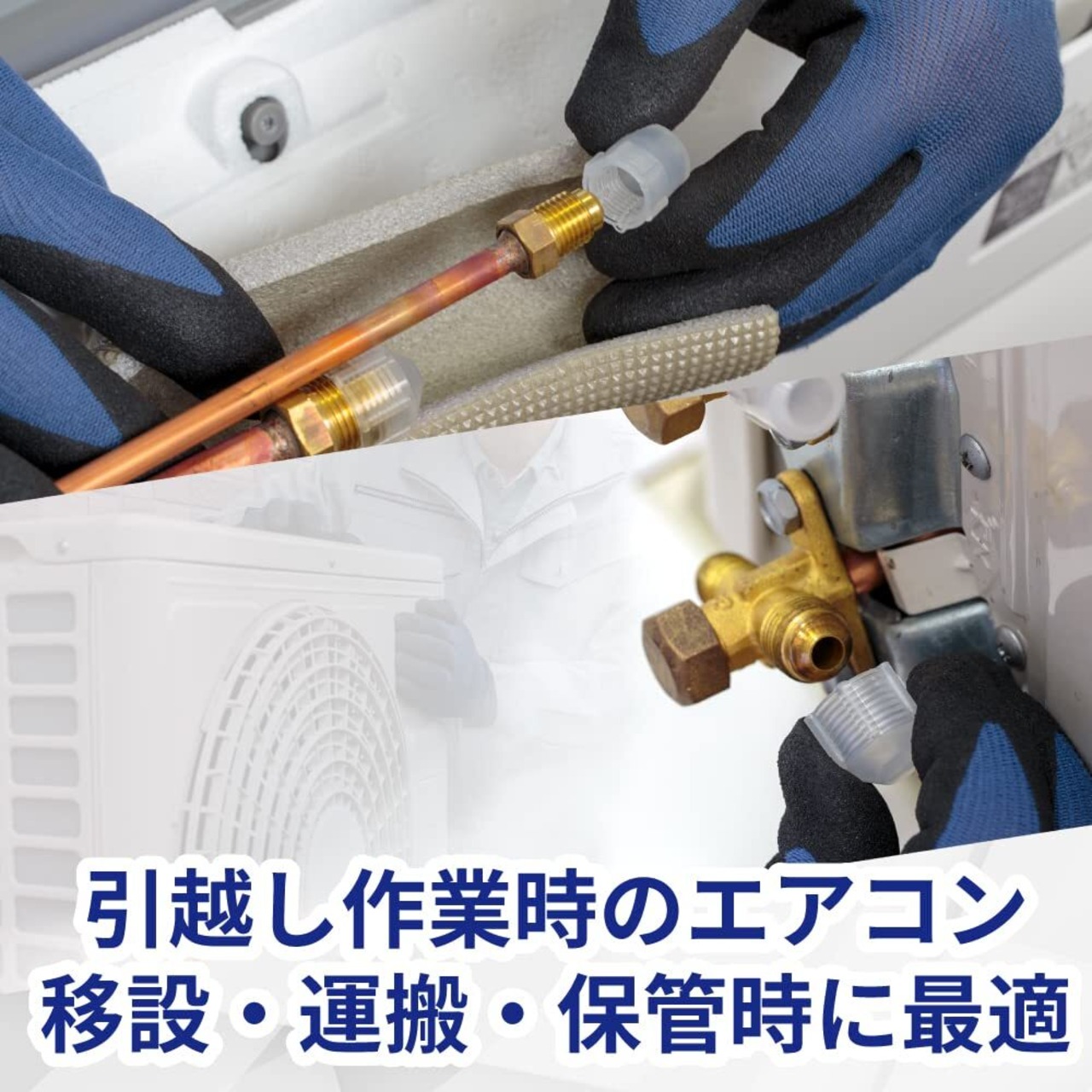 室内機や室外機のフレアネジにジャストフィットし、異物混入やフレア面の傷を防止し安全な運搬をサポートします。