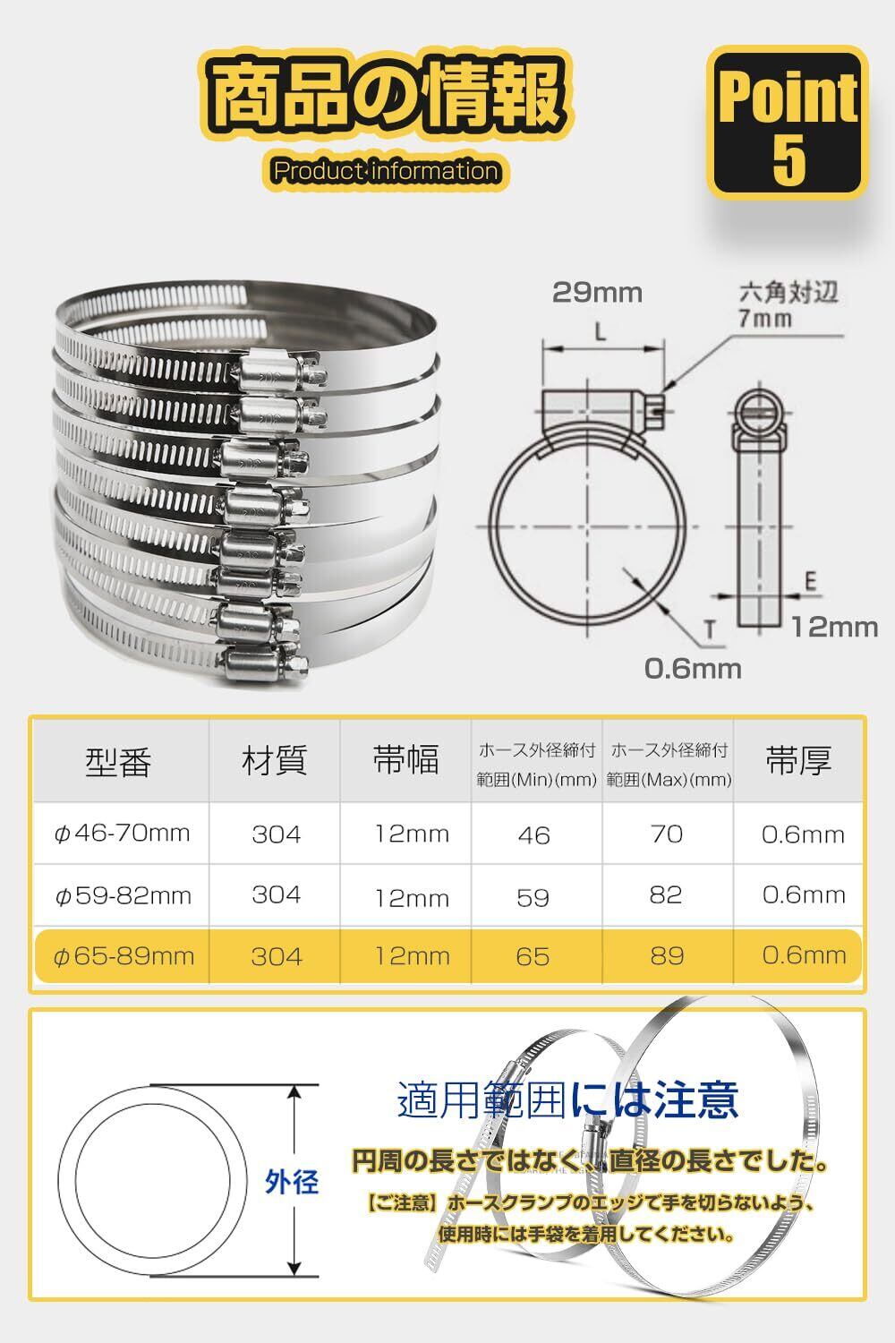 ホースバンド テンレスホースバンド 汎用ホースバンド 強力 65-89mm 8個セット 304ステンレス鋼 調整可能 強力固定 水管 農業 軟管固定 機動車両