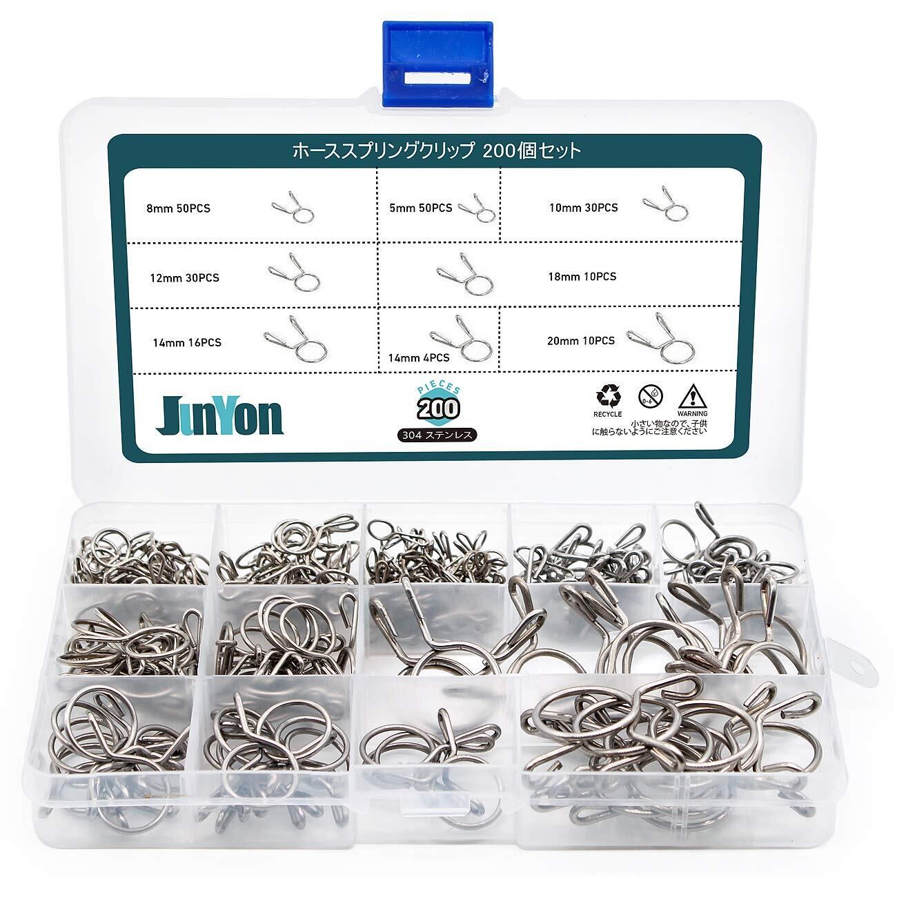 JunYon-KINPAR KINPAR ホーススプリングクリップ ホースフープ ホースチューブスプリングク サイズ調整可能 7サイズ 5~20 mm 燃料ライン 家庭用 304 ステンレス製 200個入り