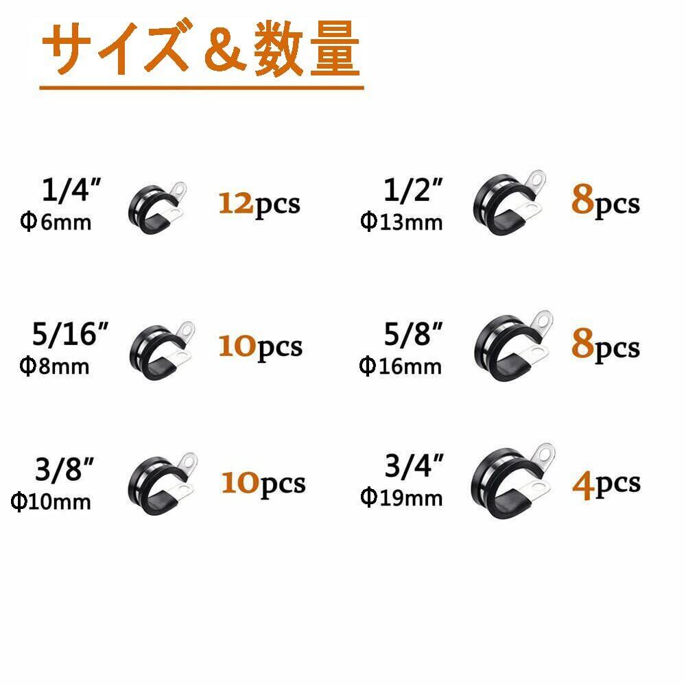 PENGLIN 52個 Pクリップ ゴム付サドルバンド ホースクランプ ケーブルクリップ パイプクリップ 304ステンレス製 EPDMゴム ゴム付サドル R型サドルバンド φ6mm φ8mm φ10mm φ13mm φ16mm φ19mm 収納ケース付き | Bloomia