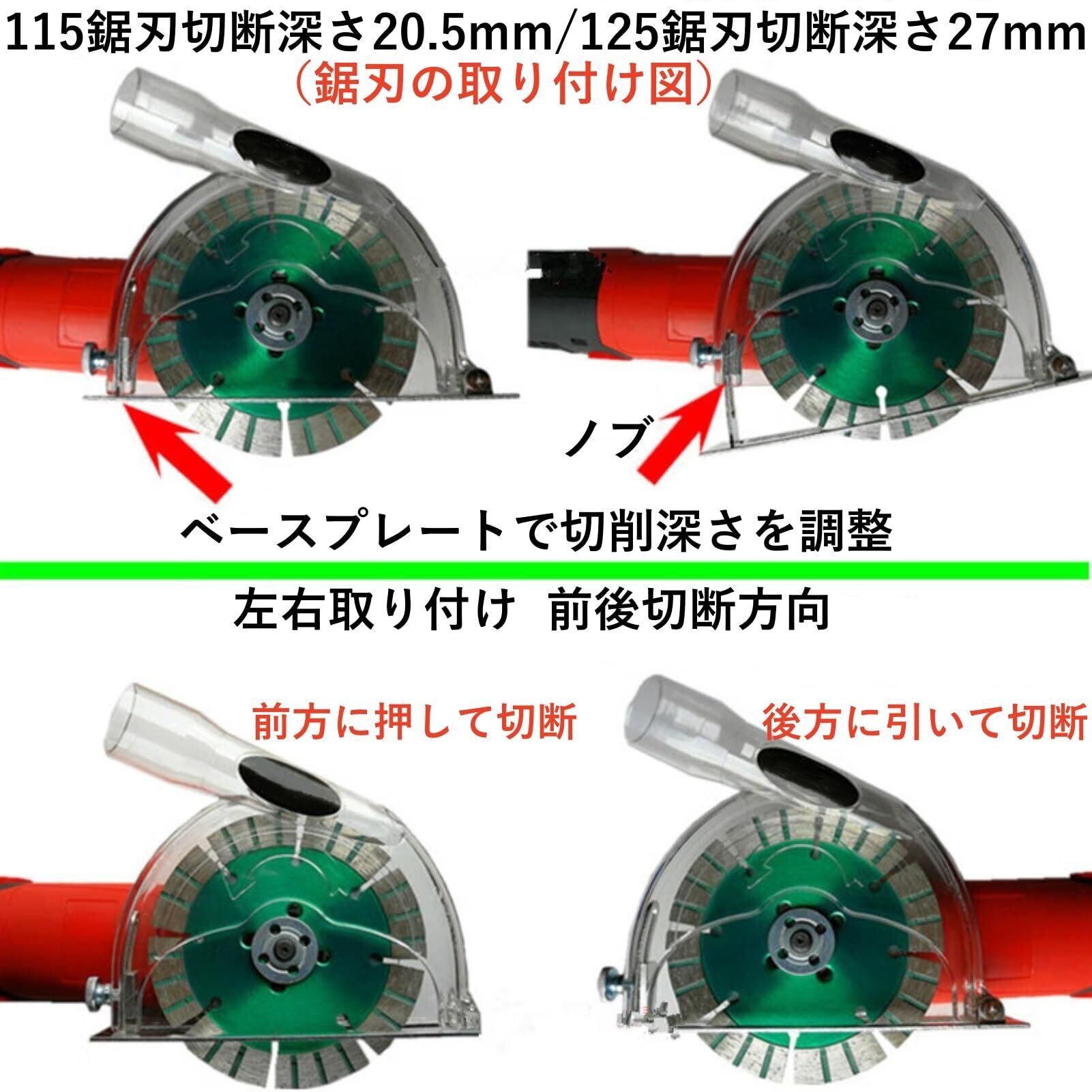 【カバーサイズ】:切断深さ:調整可能な3-27mm、切断ディスクの直径:90/115/125mm、取り付け内径:クランプ41-54mm。
