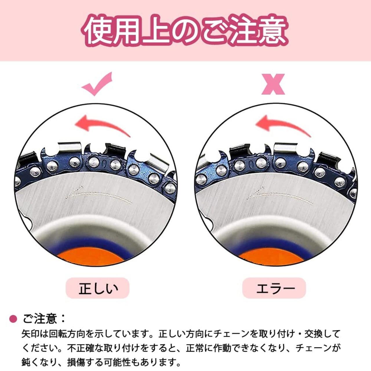 【ステンレスと硬質合金】ステンレスディスクの設計は錆びにくくて、硬質合金チェーンの切削はスムーズで、耐久性に優れます。作業中は保護措置に注意してください。