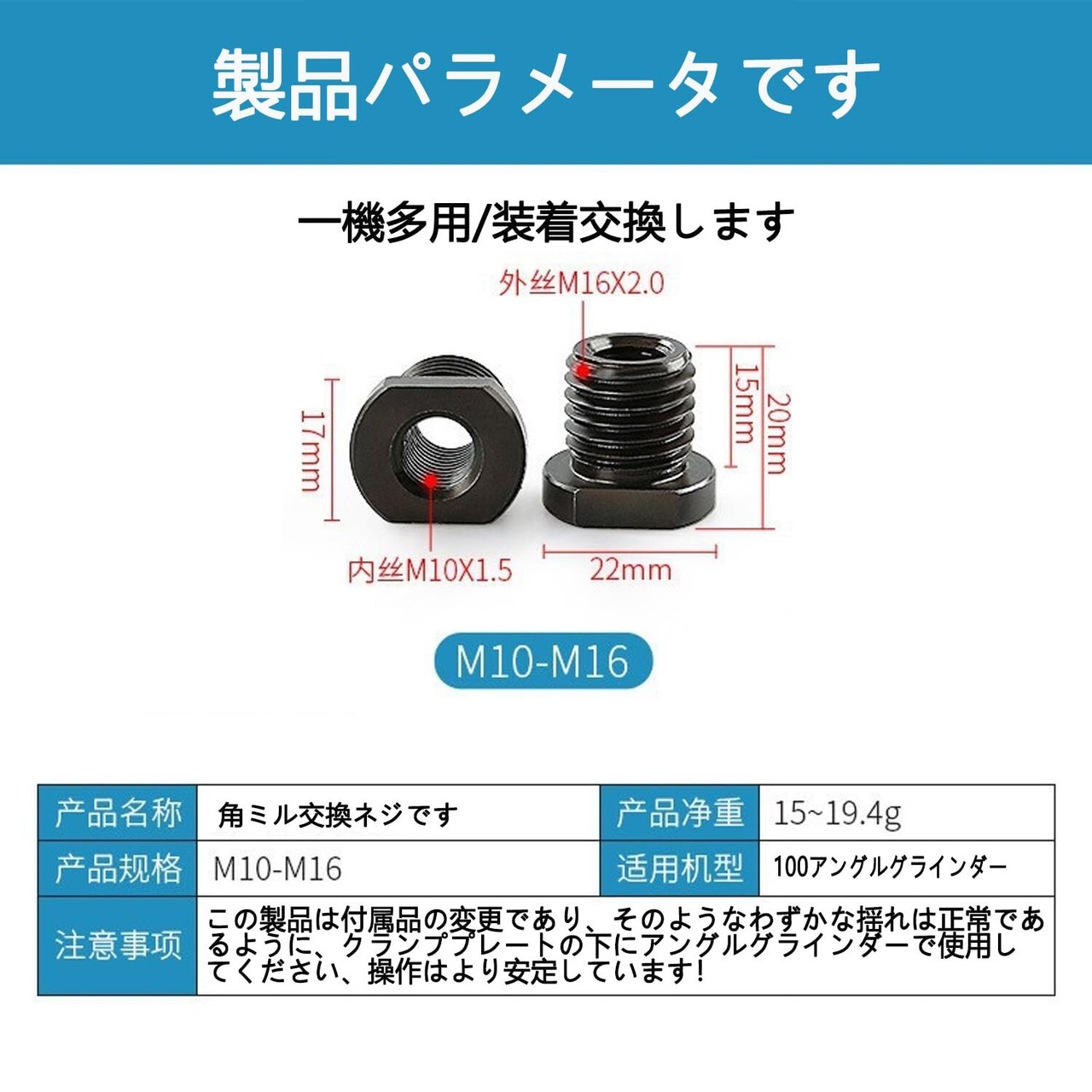 アングルグラインダーアタッチメント 100型 アングルグラインダー スピンドルアダプター ファスナー M10スピンドル→M16スピンドル