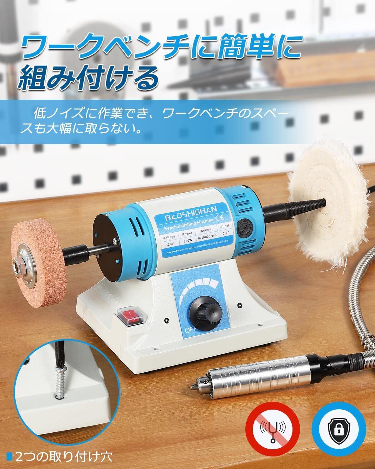 BAOSHISHAN卓上グラインダー ミニ両頭グラインダー 320W軽便グラインダー バフ研磨機 スーパーパワーミニバフ研磨機 バフモーターセット バフベンチグラインダー ポリッシャー 110V (青い卓上グラインダー +研磨アクセサリー) | Bloomia