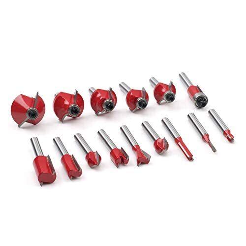 超硬チップ トリマー ルーター ビット径 6.00mm 6インチ 汎用セット 硬質炭素鋼 15種 赤