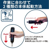 【作業に合わせた2つの起動方法】本体を押し付けて起動させるプッシュ&ゴー、もしくはメインスイッチによる起動が可能