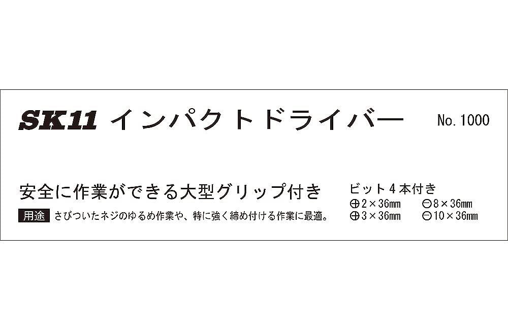 SK11(エスケー11) インパクトドライバー ビット4本付き NO.1000