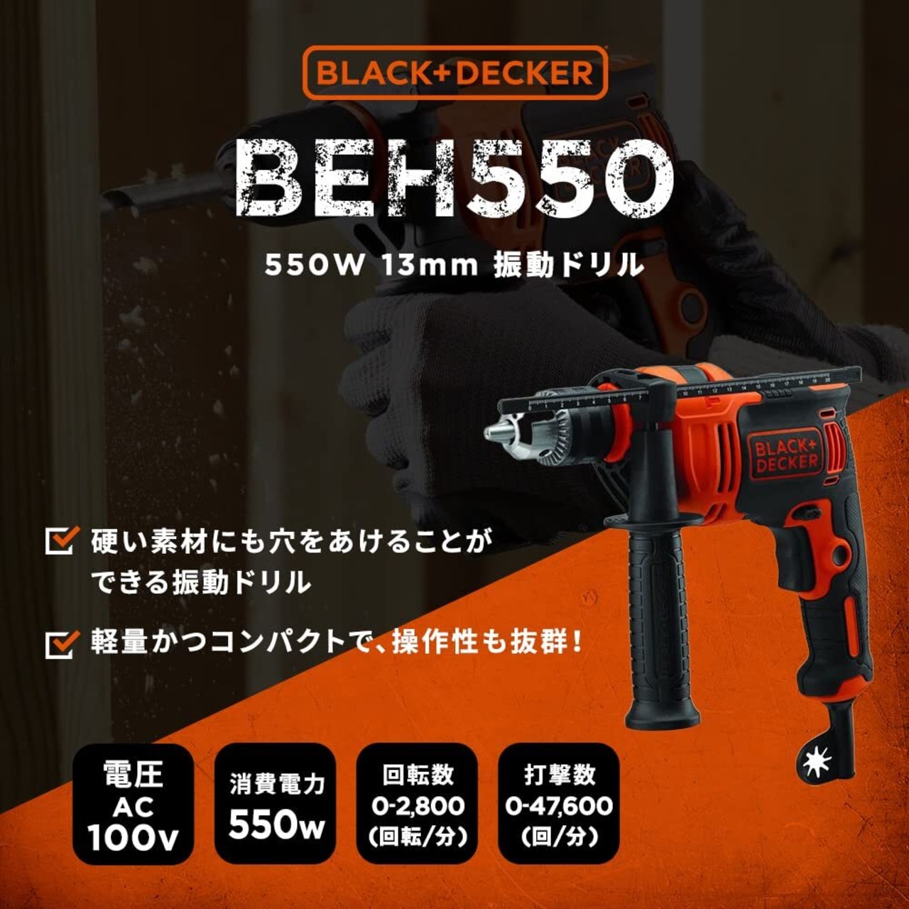 ブラックアンドデッカー(BLACK+DECKER) 振動ドリル ハンマードリル AC100V コード式 コンクリート 穴あけ 550W 13mm BEH550-JP