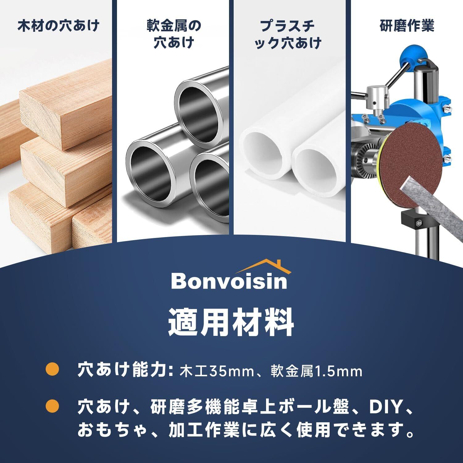 Bonvoisin 卓上ボール盤 ベンチドリル ボール盤 ドリル チャック 100V 多機能 回転速度 6段変速 卓上 バイス付き 穴あけ 木工35mm 軟金属1.5mm 研磨機能あり ドリルビット 1~13mm適応 | Bloomia