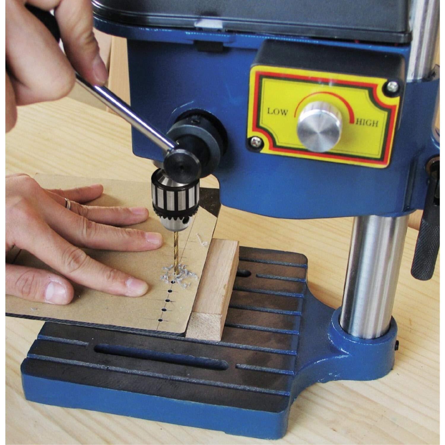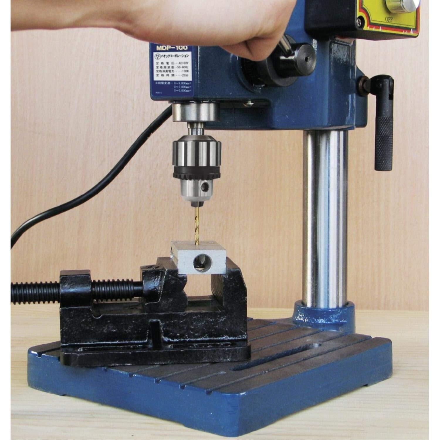 軽金属や木材、プラスチックやアクリル等の垂直穴あけ作業に。ホビーに便利なミニサイズ。深さ調節機能付。プーリによる3段階変速+速度調節機構付で最適な回転速度の設定が可能。