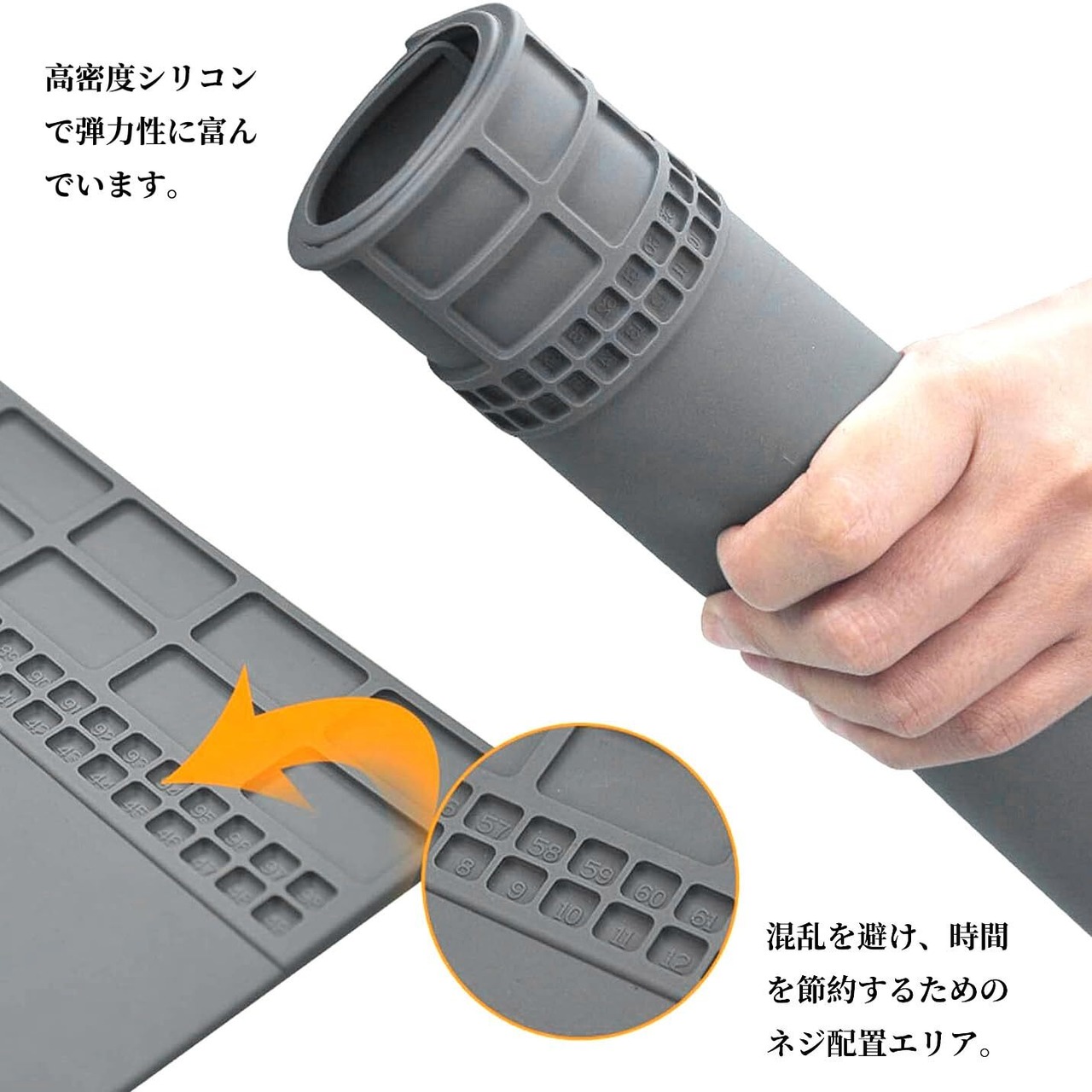 【仕分けグリッド】メンテナンス作業を容易にするために、ワークマットには様々なネジの配置グリッドがあり、様々な部品を仕分けして配置することができ、小さな部品を仕分けしやすく、作業効率を上げながらすっきりと便利に使うことができます。