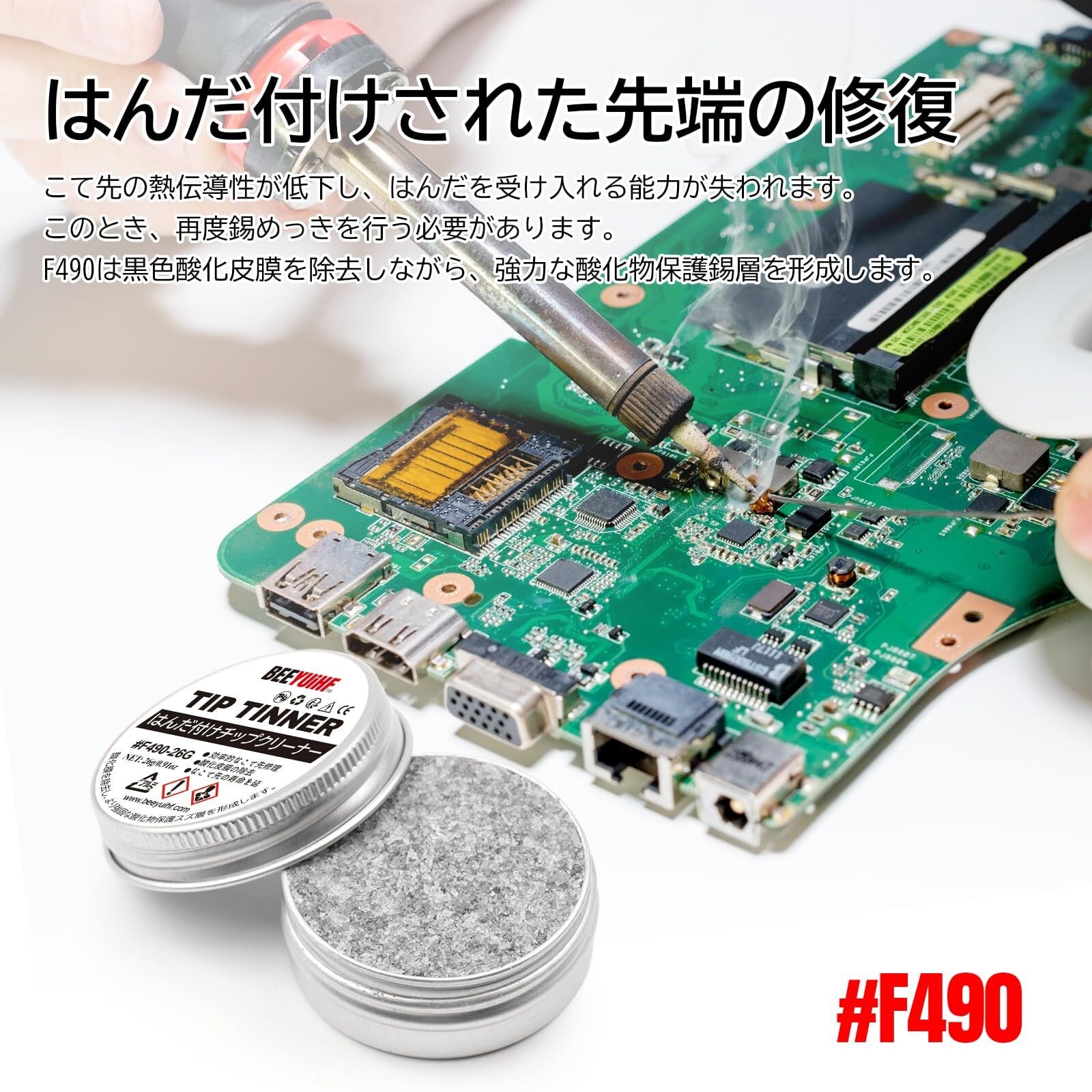 BEEYUIHF はんだごて先端ティンナークリーナー、鉛フリー酸化クリーニングペースト、リフレッシュチップティンナーフラックス、はんだごて先端クリーニング #F490 (0.92oz/26g)