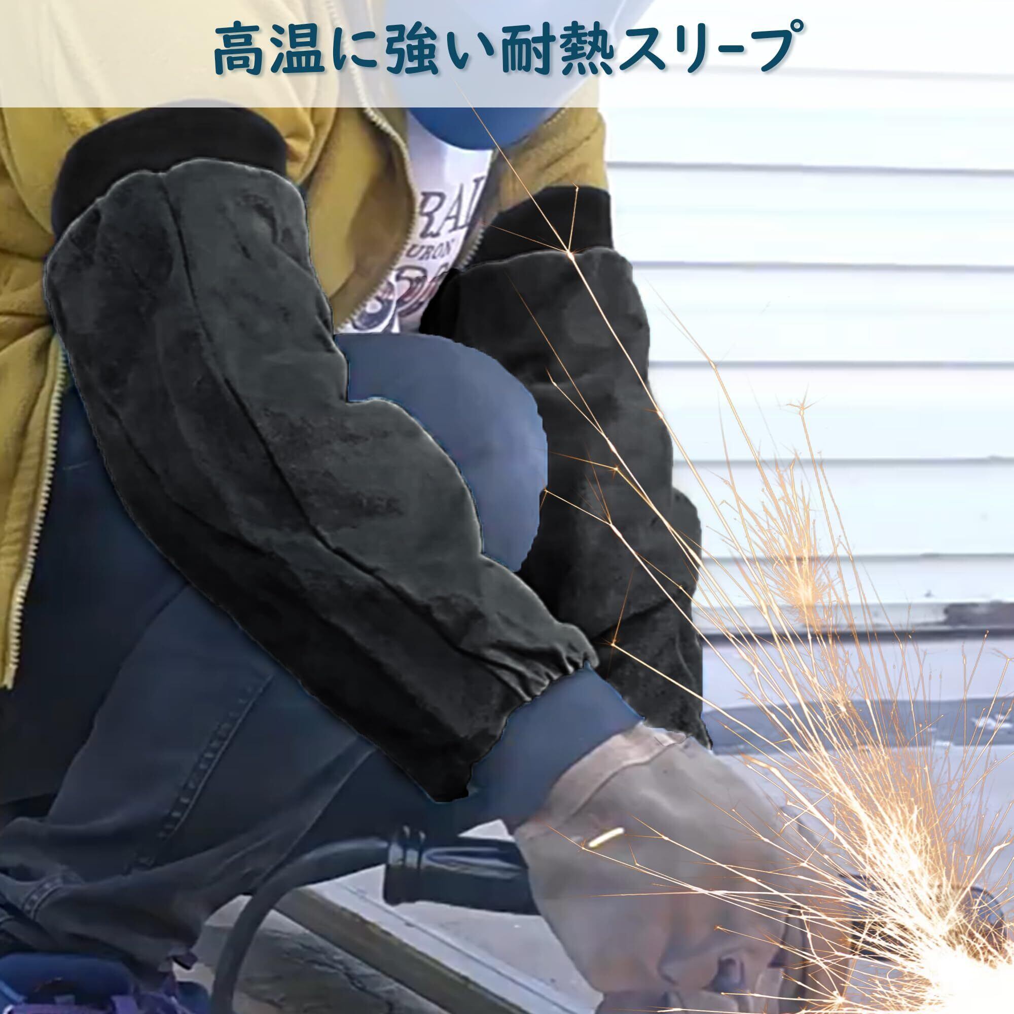 優れた保護性能:耐熱性・防火性・難燃性に優れた本革製袖カバーは、火花や飛散物をしっかりガード。溶接作業などで発生する火種の飛散や高温によるやけどを確実に防止します。