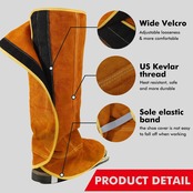 QeeLink レザー溶接スパッツ エクストラロング - 耐熱と耐摩耗性溶接ブーツカバー - フルカバーシューズプロテクター - 溶接ゲートル 1ペア