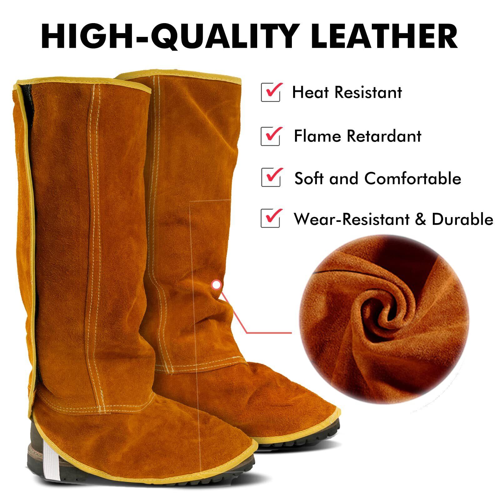 QeeLink レザー溶接スパッツ - 耐熱性と耐摩耗性に優れた溶接ブーツカバー - 靴プロテクター - 溶接ゲートル