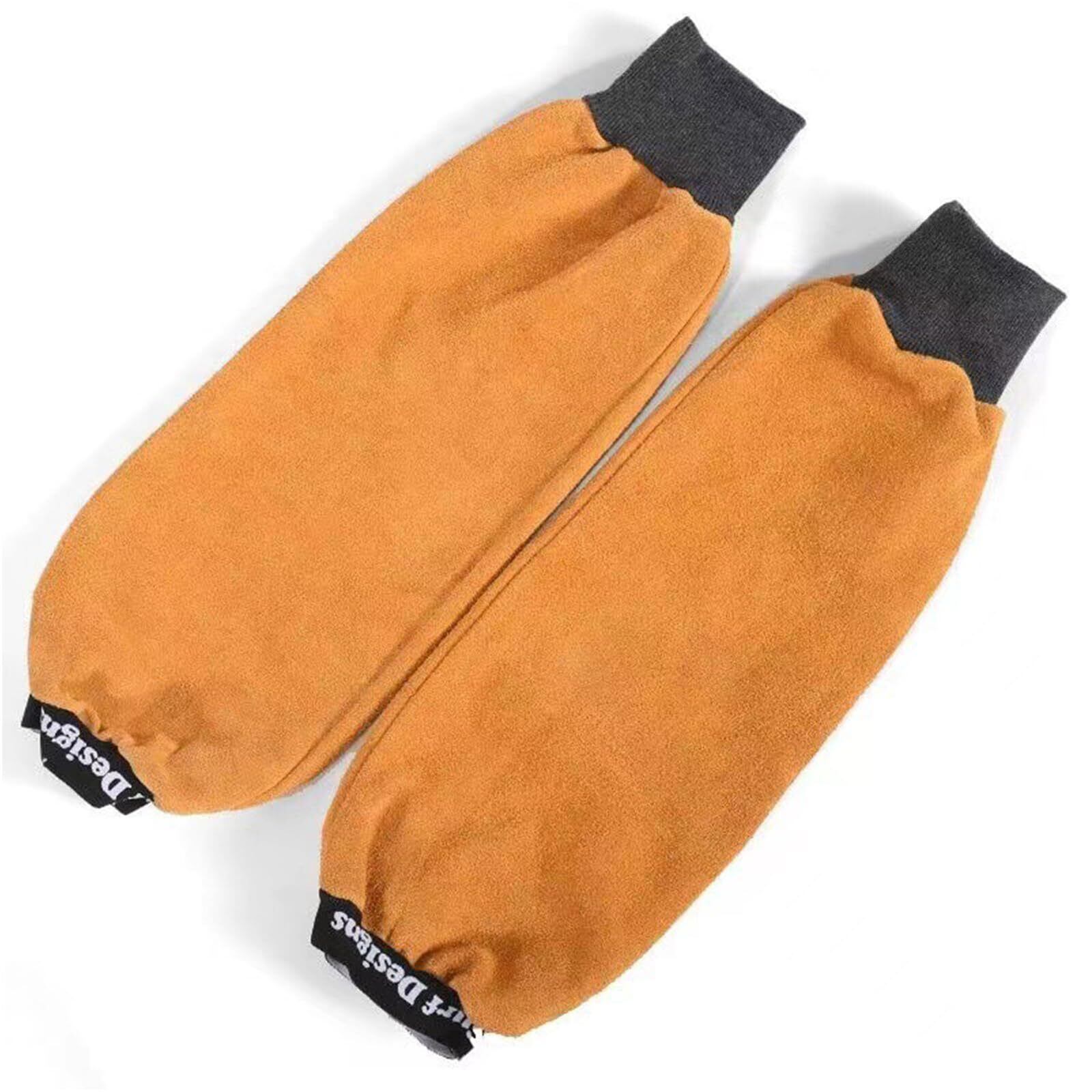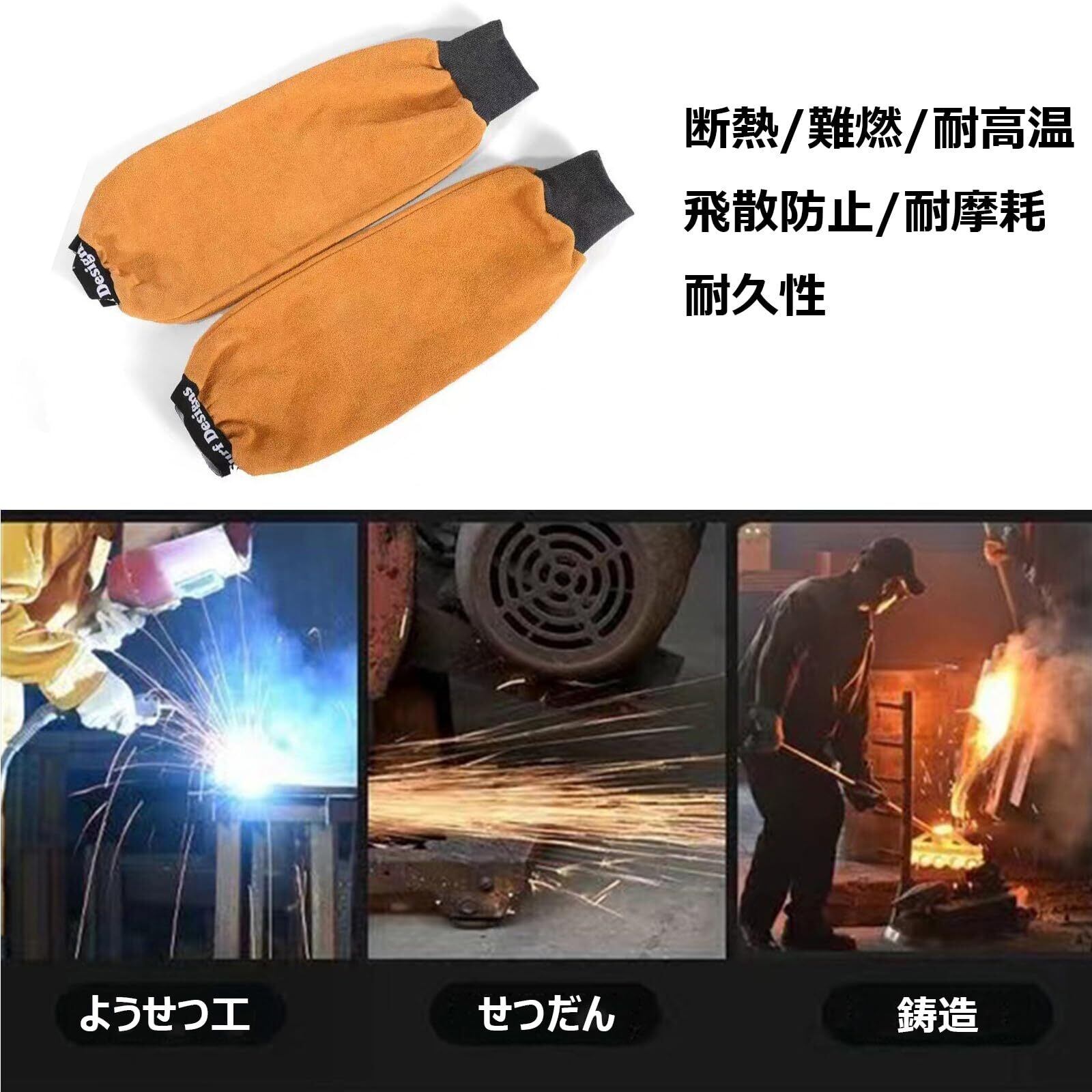 【優れた保護性】耐熱・防炎・難燃性に優れたレザースリーブは火の粉が防止可能で、ワンペアを入手すれば、溶接作業による火の粉の飛び出しや高熱によるケガからしっかりと守れます。りと守れます。