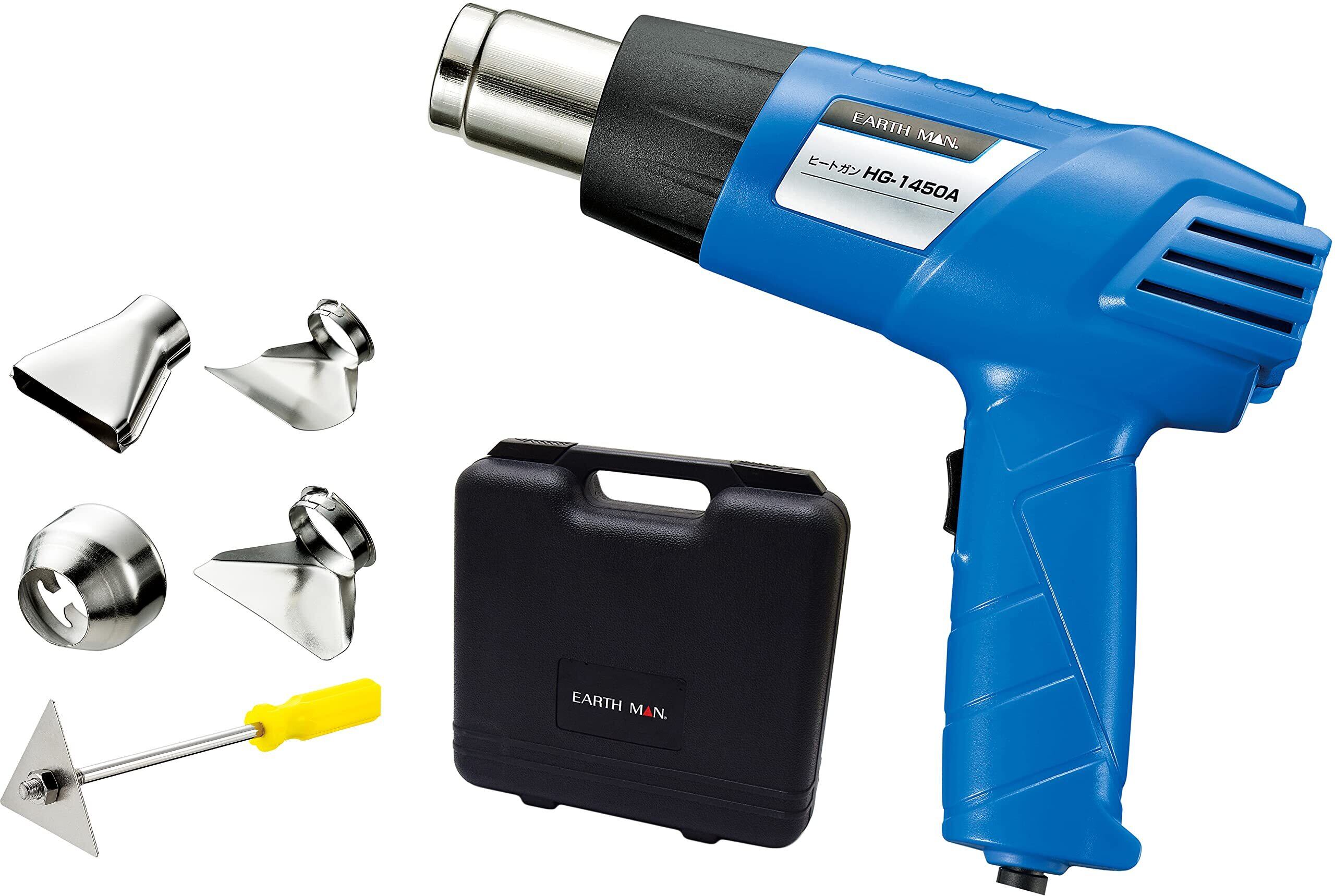 高儀(Takagi) ヒートガン EARTH MAN 小型 HG-1450A【豊富なアタッチメント付属】【温度や風量調整可能】【シュリンク包装、塗料乾燥、曲げ加工、カーフィルム施工など】 | Bloomia