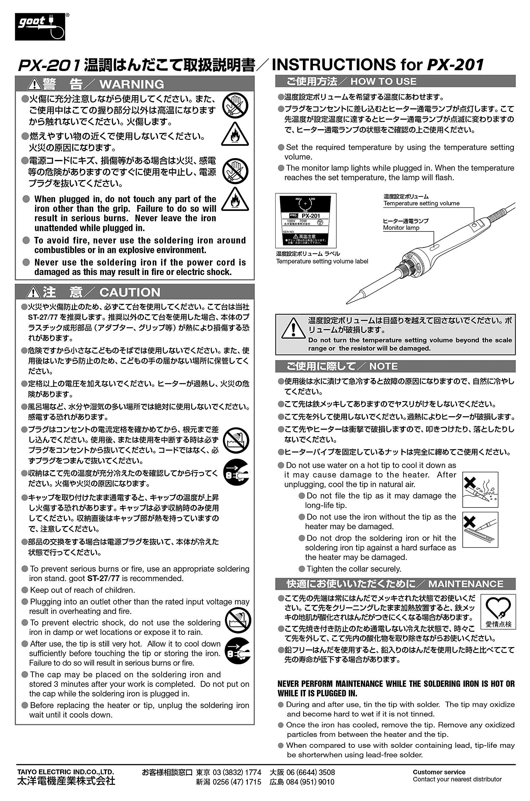太洋電機産業(goot) 温調はんだこて PX-201 70Wハイパワー 鉛フリーはんだ対応 日本製