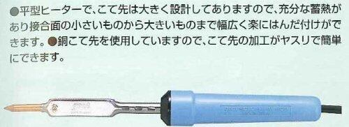 平型ヒーターで、こて先は大きく設計してありますので、充分な蓄熱があり接合面の小さいものから大きいものまで幅広く楽にはんだ付けができます。