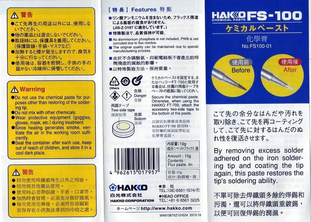 白光(HAKKO) こて先ポリッシャー ケミカルペースト FS100-01