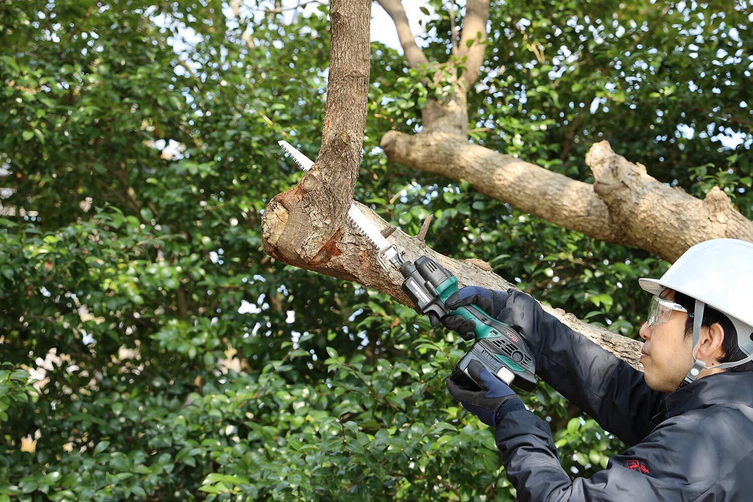 ・刃渡り300mmで幹や太枝もたて・よこ・ななめ一発切断