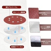 【幅広い使用用途】サンディングディスク(荒目・中目・細目の3種類セット)、木製品・木材のバリ取り、金属や非金属の錆除去、ゴム製品、石材、ガラス、プラスチック、磁器、壁材、人工大理石、革など、さまざまな材質の艶出しや塗装前の下地研磨に幅広くご使用いただけます