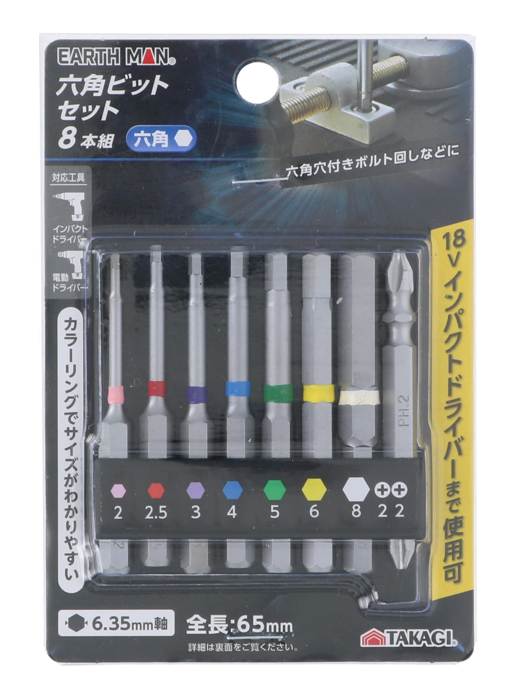 高儀(Takagi) 六角軸 六角ビットセット8本組 EARTH MAN