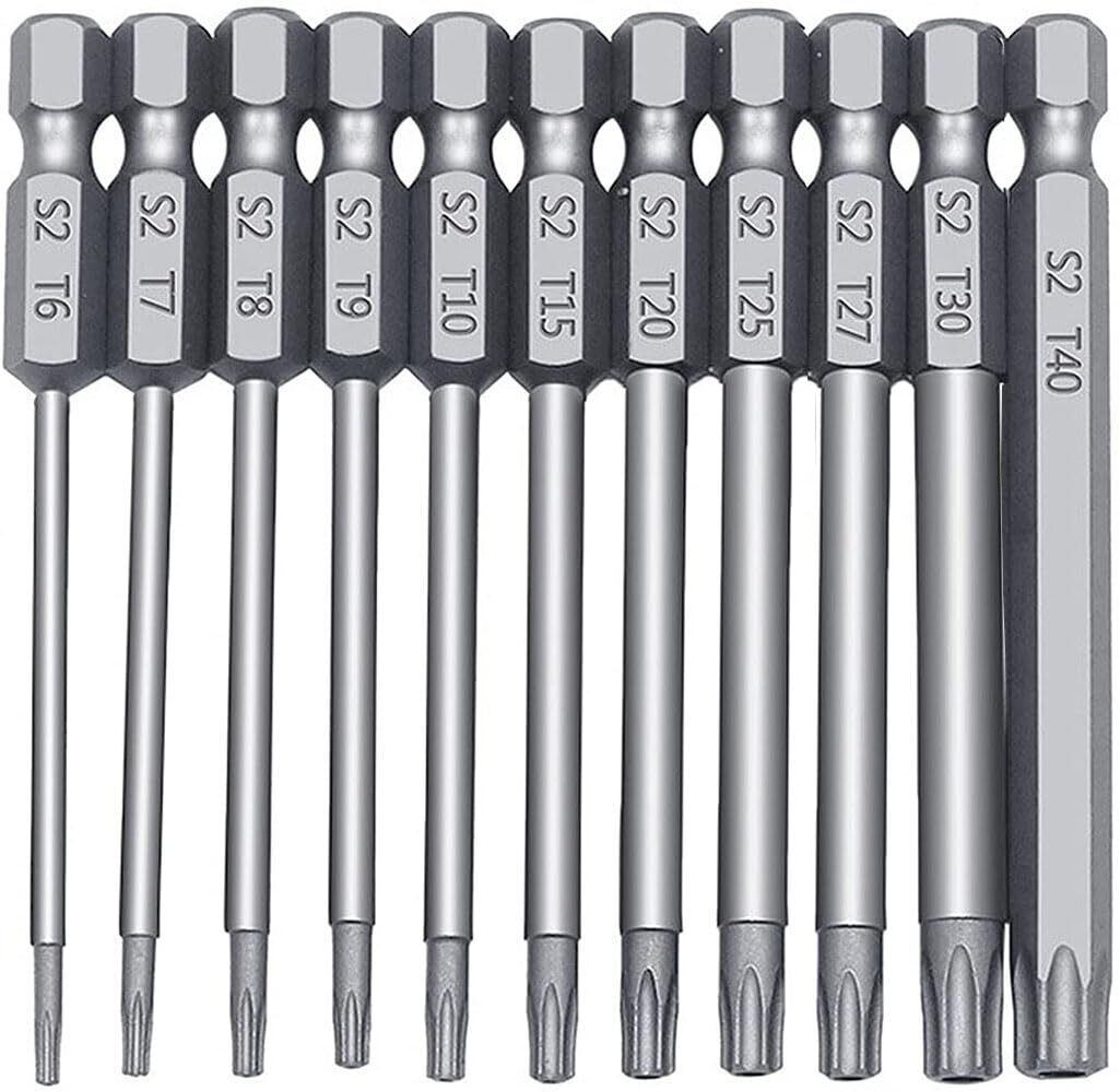 トルクスドライバー ビット 11本セット 中空トルクス頭 75mm 六角軸 6.35mm T6-T40 S2鋼ドライバービット 磁気 トルクス星ネジ用ビット工具