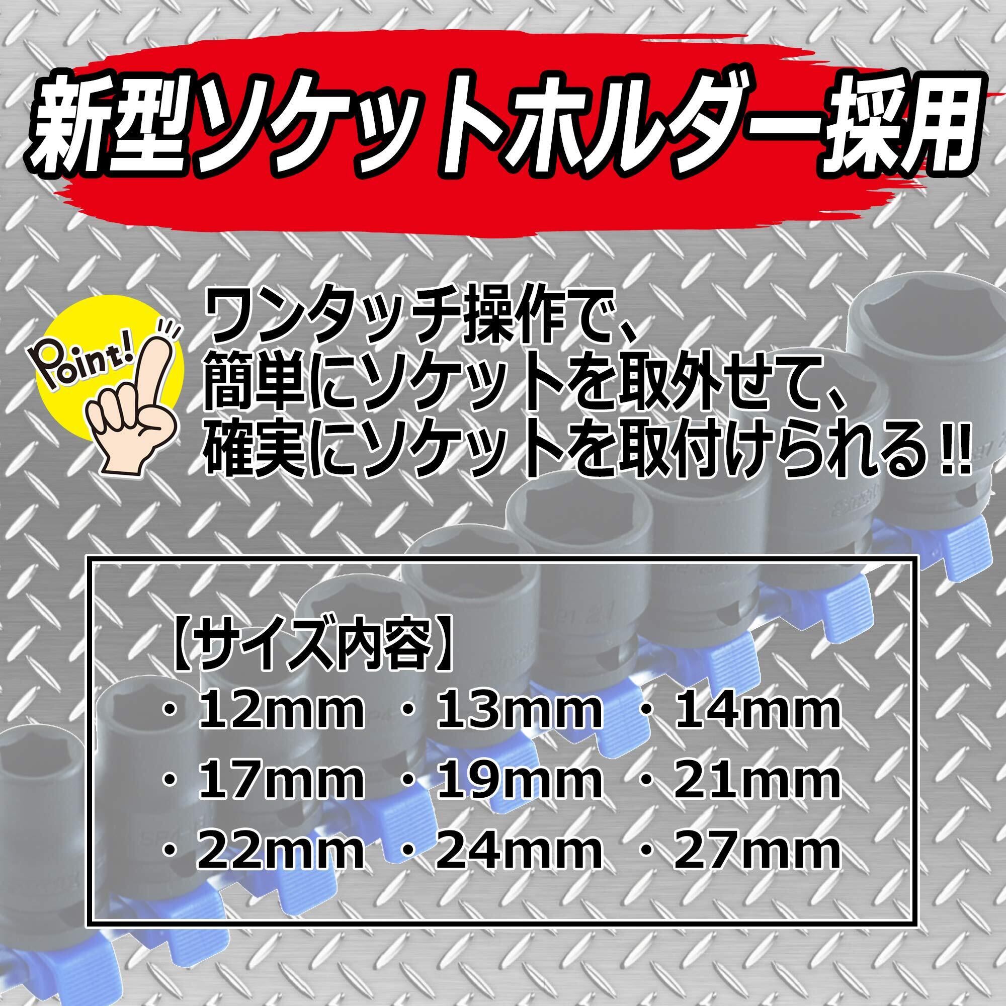 SK11(エスケー11) インパクトソケットセット SHS409P クリップ色:青 差込角:12.7mm 9点 1セット