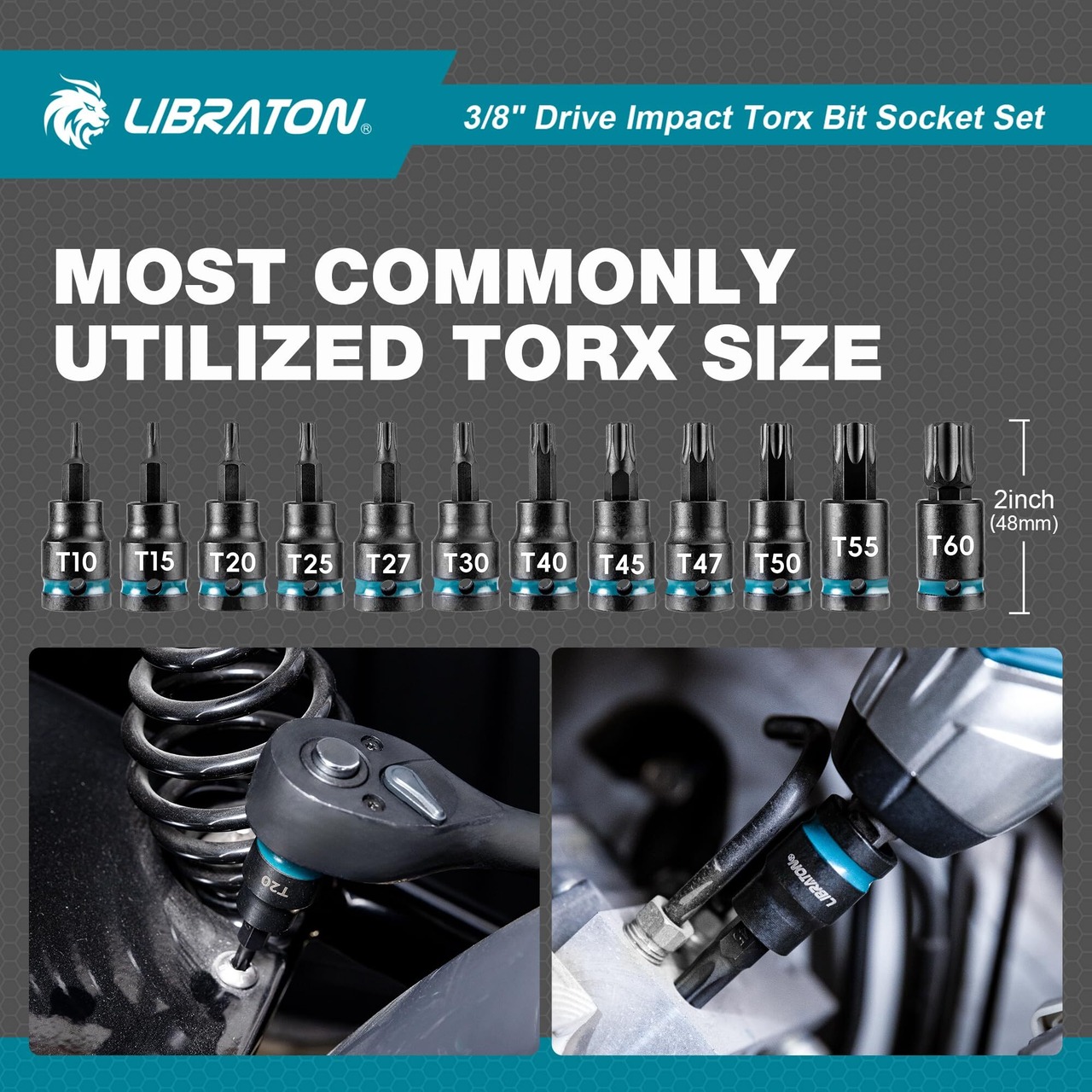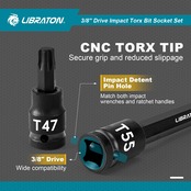 LIBRATON トルクスビットソケットセット 差込角 3/8インチ(9.5mm) S2鋼 星型ビットソケットセット T10-T60 インパクト用 トルクスソケットセット 24点セット