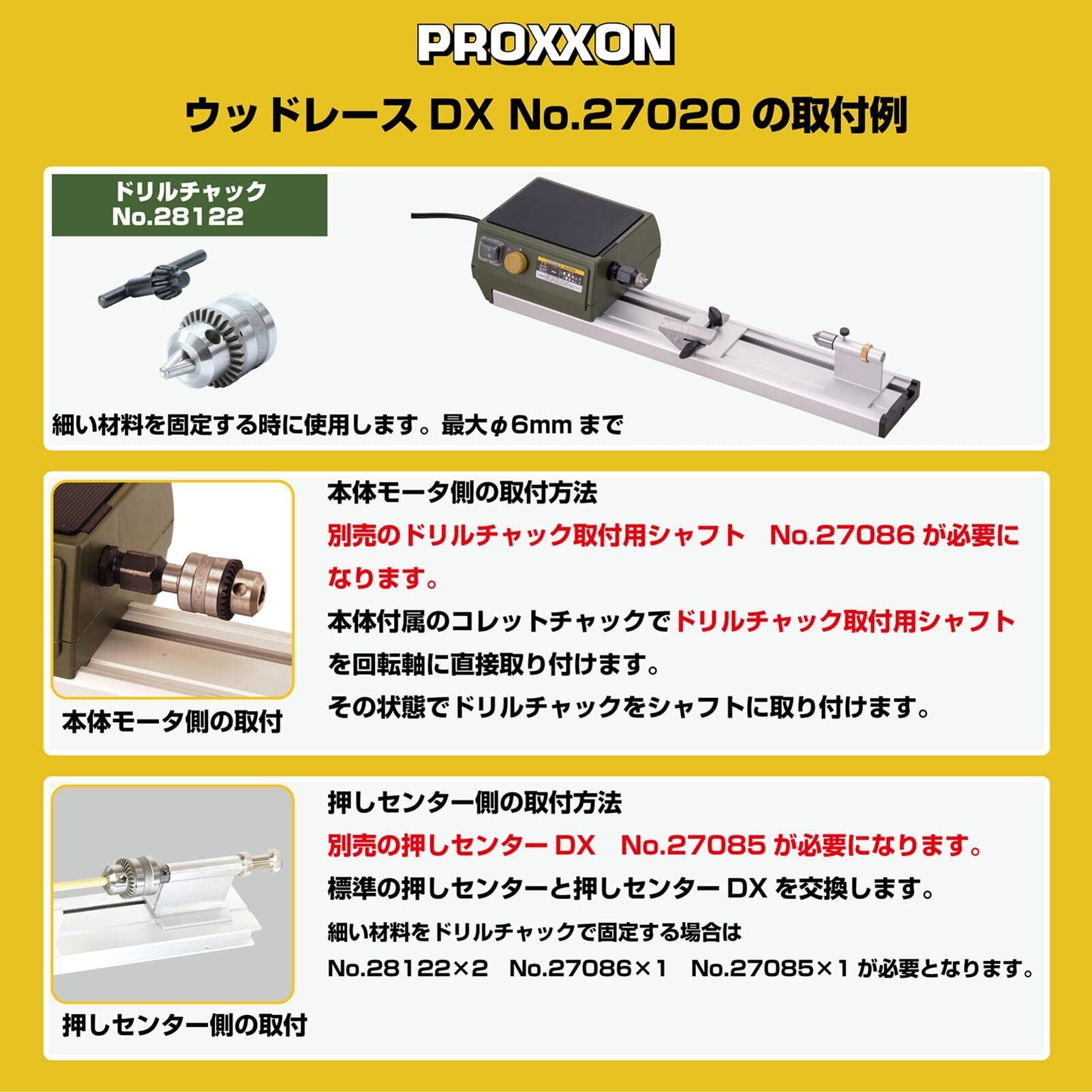プロクソン(PROXXON) ドリルチャック 【取り付け可能サイズ0.8~6.0mm】 木工旋盤の作業時に便利 No.28122
