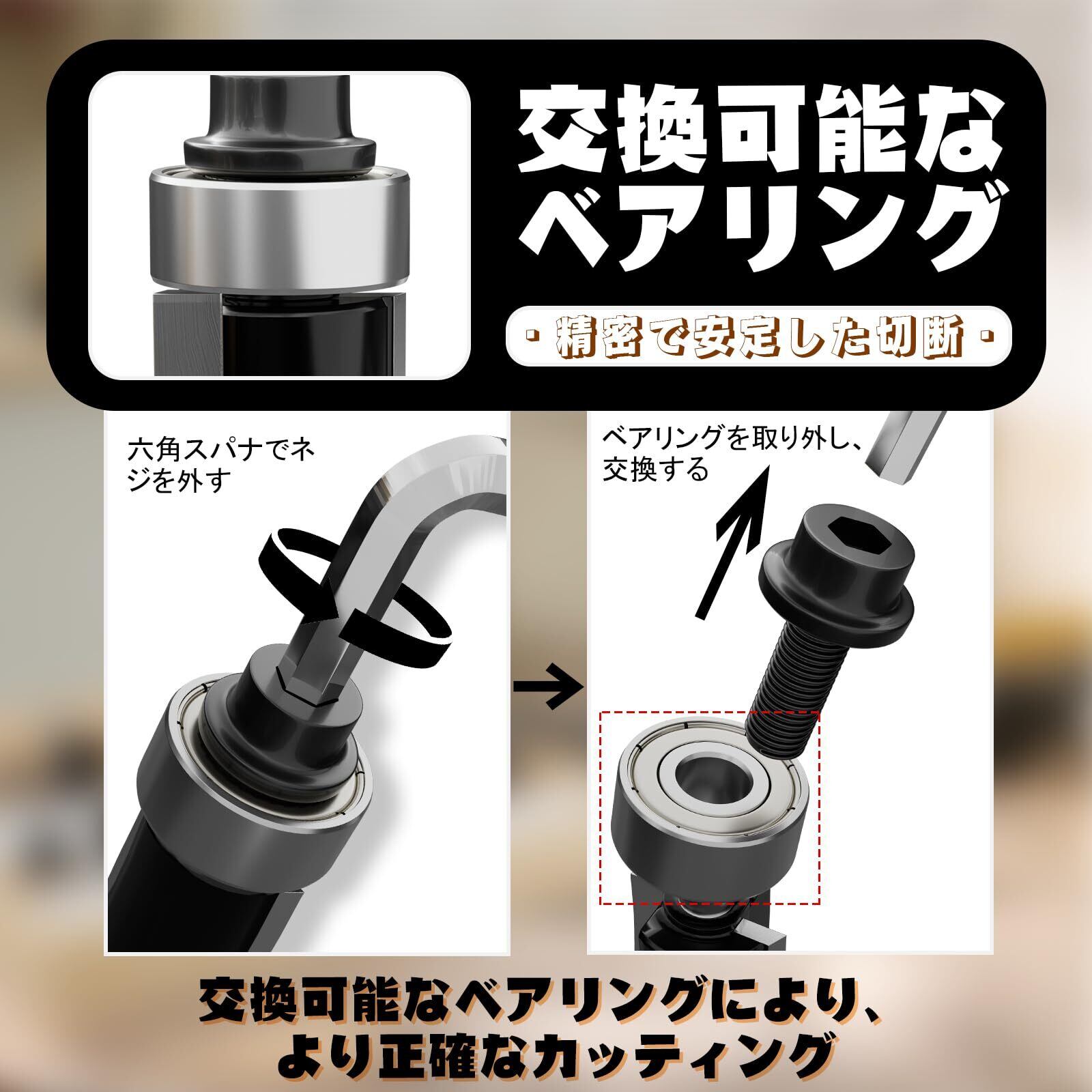 【適用範囲】: 無垢材、合板、MDF、パーティクルボード、ラミネート、アクリルに最適。複数のビットプロファイル(ストレート、溝、面取り、ラウンドオーバーなど)が付属しており、彫刻、エッジング、接合、装飾ディテールを正確に処理。