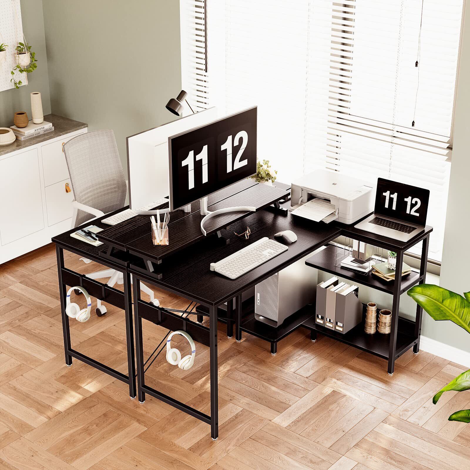 【ゲームと仕事両立】L字ゲーミングデスクは実用性が高く、ゲームプレイ、在宅勤務、勉強机、書斎机など様々なシーンで大活躍!お部屋のレイアウトに合わせてラックの位置を変更できます。モニター台を利用し、目線をあげて作業時の姿勢を改善し、テレワークが快適になり、作業効率も格段に上がります。