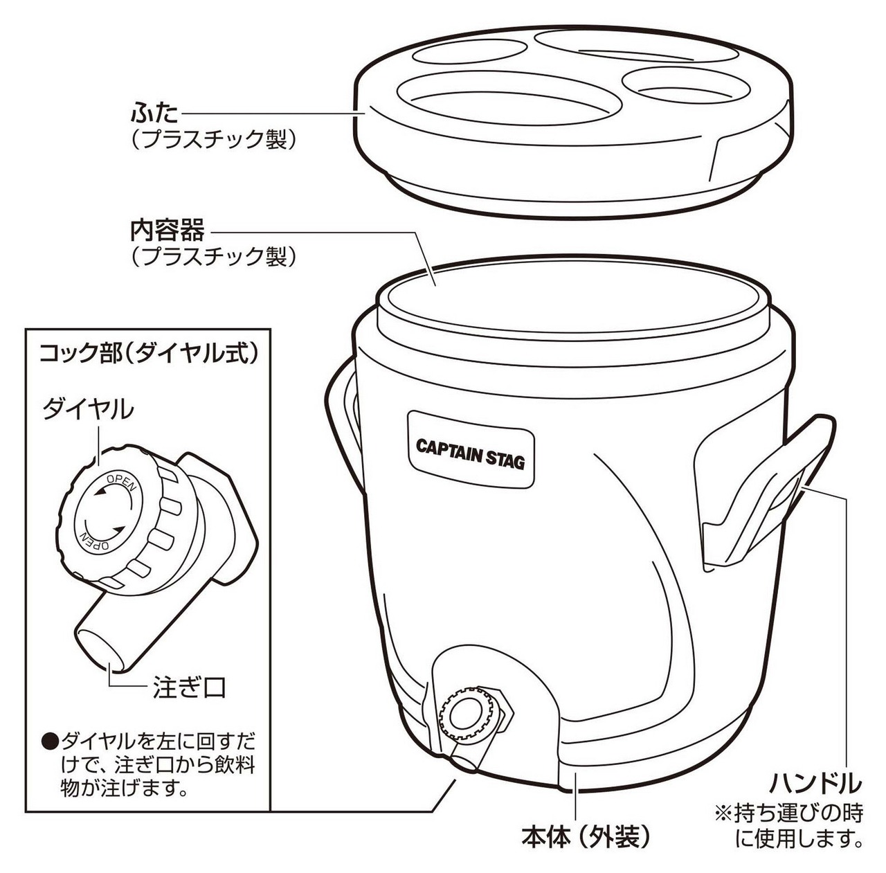 キャプテンスタッグ(CAPTAIN STAG) ジャグ ウォータージャグ タンク クーラーボックス ウォータージャグ&クーラー 【1栓/容量13L/18L】 保冷専用 スポーツドリンク対応 リガード | Bloomia