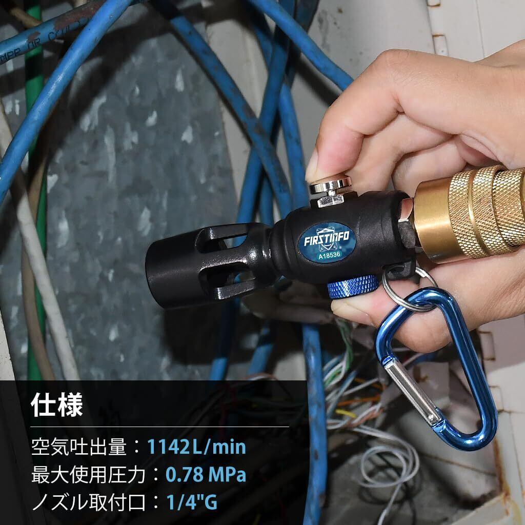 良匠 FIRSTINFO TOOLS パワフル ミニエアーダスターガン 増風ノズル付き 流量調整可能 エアブローガン