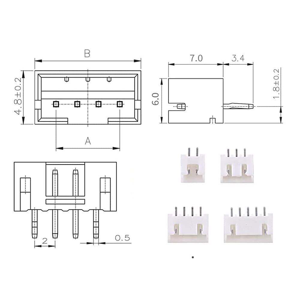 LIKENNY プラケース入り JST XH型端子 配線コネクター端子 2pin 3pin 4pin 5pin 2.54mm コネクタ ハウジング コンタクトピン セット 230個 セット | Bloomia