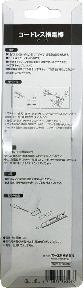 3~30V DC回路専用。※AC電源回路や家庭用電源には使用しないでください。※常に安全で清潔な場所で作業してください。※運搬時、保管時はV字溝キャップを取り付けてください。電池は付属しておりません。