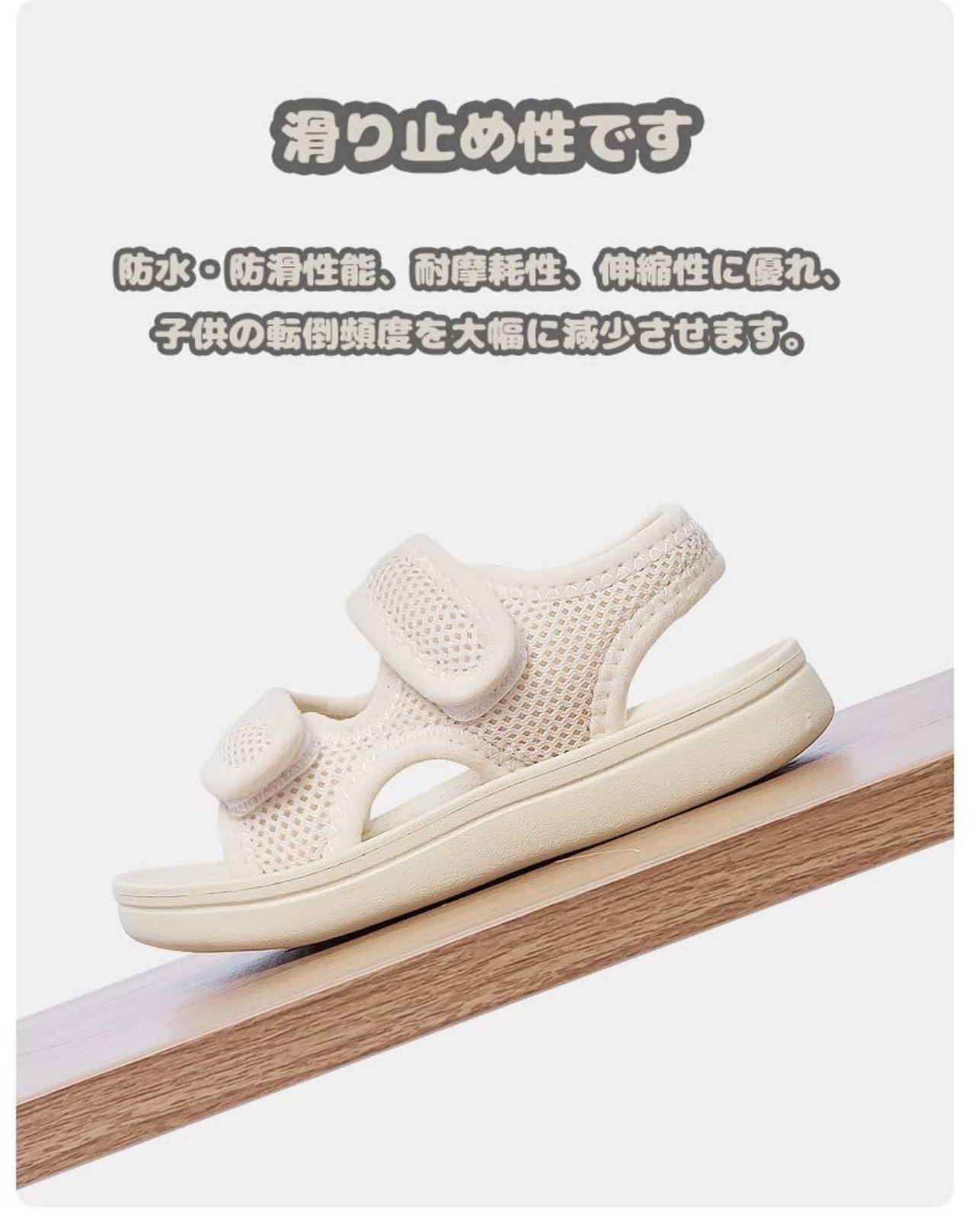 【商品の特徴】子供用の夏用サンダル。涼しく通気性があり、軽くて履きやすい。メッシュ素材を使用し、暑い夏には快適な履き心地を提供します。
