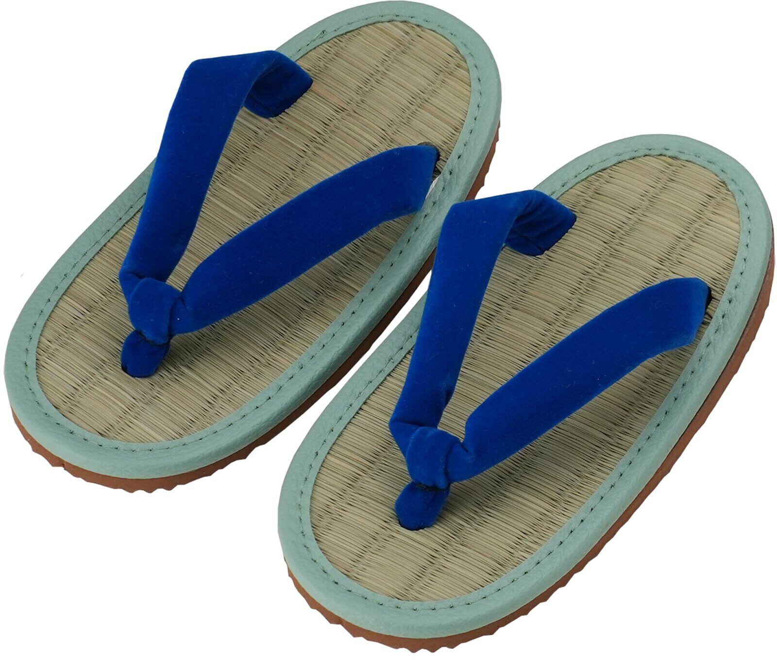素材・材質:鼻緒/(基布)レーヨン・(フロッキー)ナイロン、鼻緒芯(紐)/ポリプロピレン・ナイロン・ポリエステル、中底(上部)/天然い草、底材/ゴム底、パイピング部/PVC