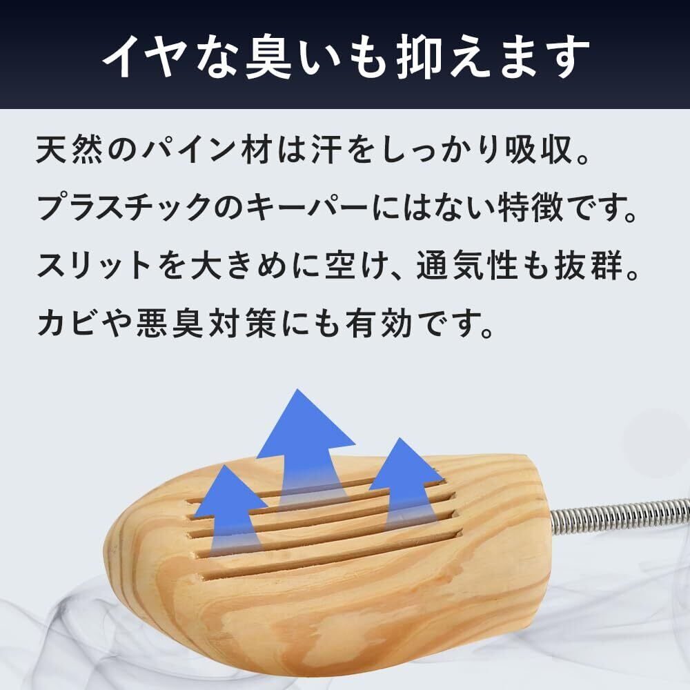 靴のしわを伸ばし形を整え、木材の調質作用で靴を美しく快適に保ちます。