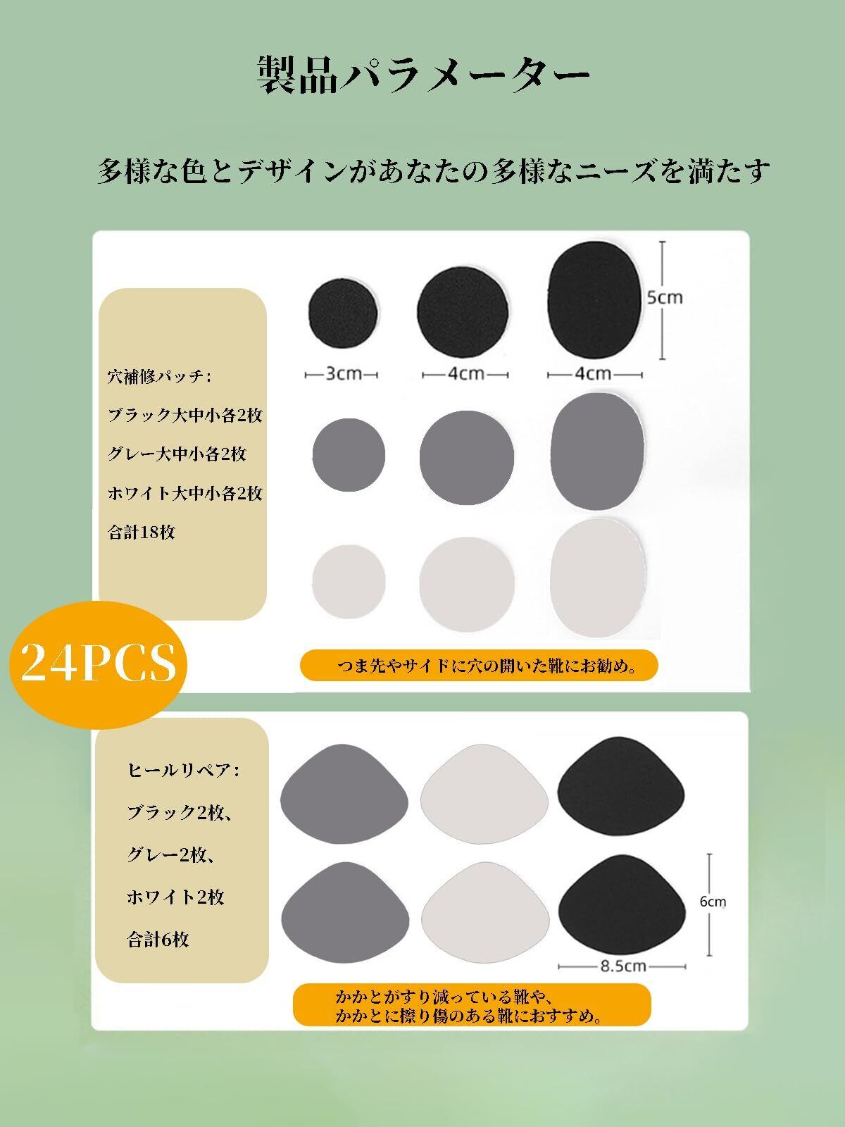 [LYHMHAMY] 靴かかと補修 パッチ 内側 24枚セット かかとパッド 内側かかと補強 靴修理 補修用品 (3色:ブラック、ライトグレー、ホワイト)