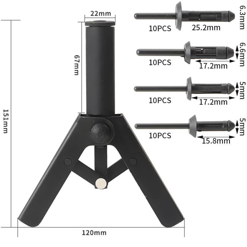 【複数タイプのリベット】:手動リベットキットには、異なるタイプのリベットが含まれており、その中にはプラスチックリベットも含まれています。これらのリベットは金属、プラスチック、その他の材料の接続に使用され、しっかりとした信頼性のある接続効果を提供します。