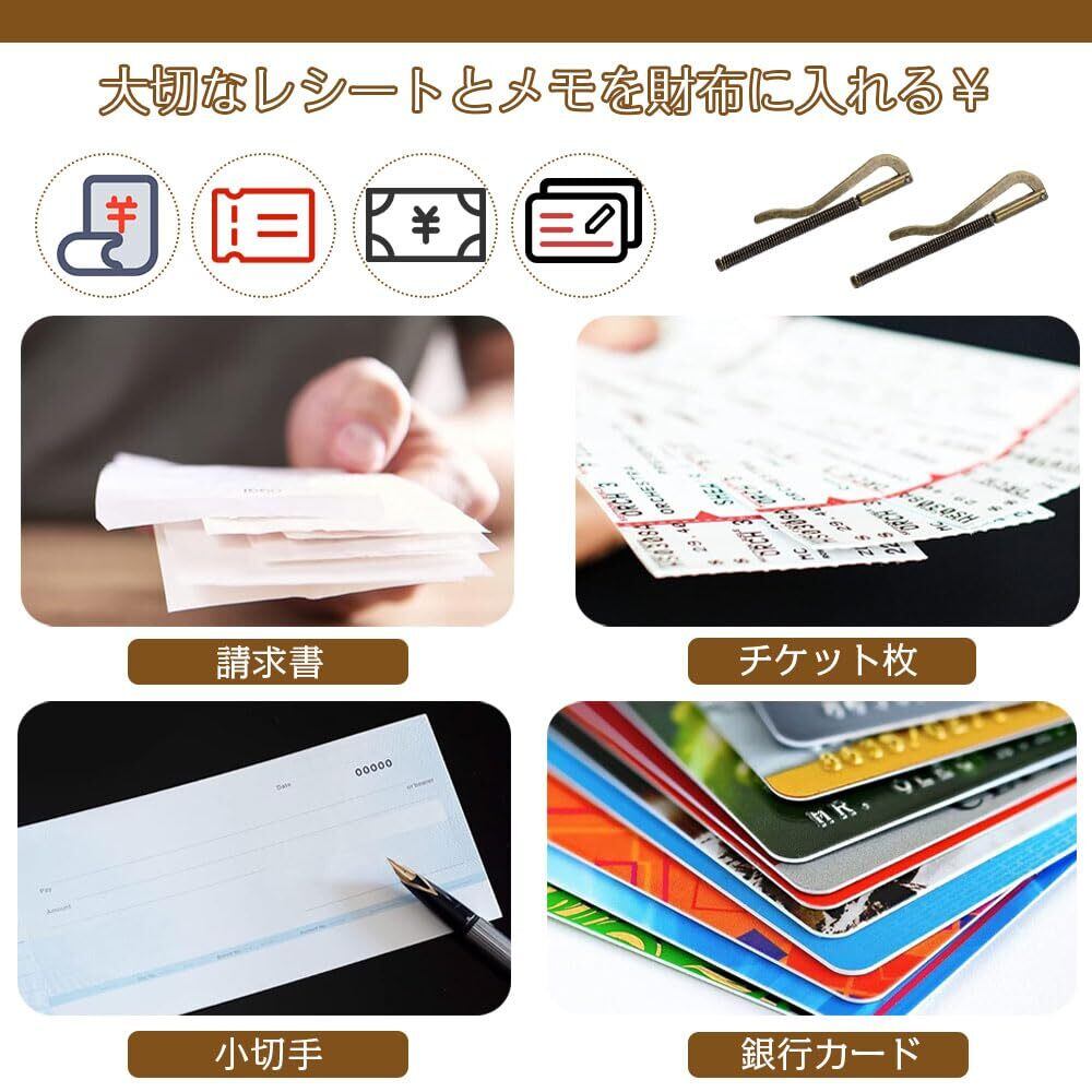 多用途性:この多機能な固定具は、現金、紙幣、その他の重要な領収書やメモが財布から落ちるのを効果的に防ぎ、財布の中で無造作に滑って見つけにくくなるのを防ぎます。