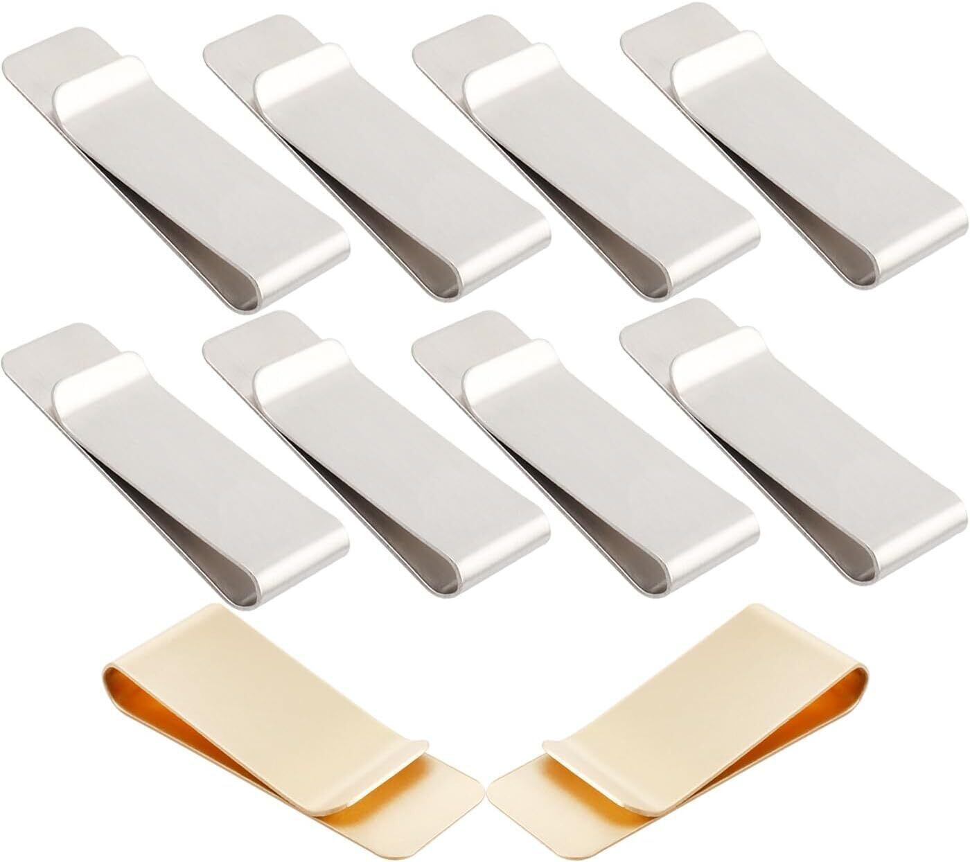 Bestgle 10個セット マネークリップ、ステンレススチールカードクリップ 男性/女性用、 プレーンタイプ スマートペーパークリップ、お財布いらず お札はさみ、コンパクトマネーキャッシュクリップ、分類現金の収納に適している シルバー8個 & ゴールド2個
