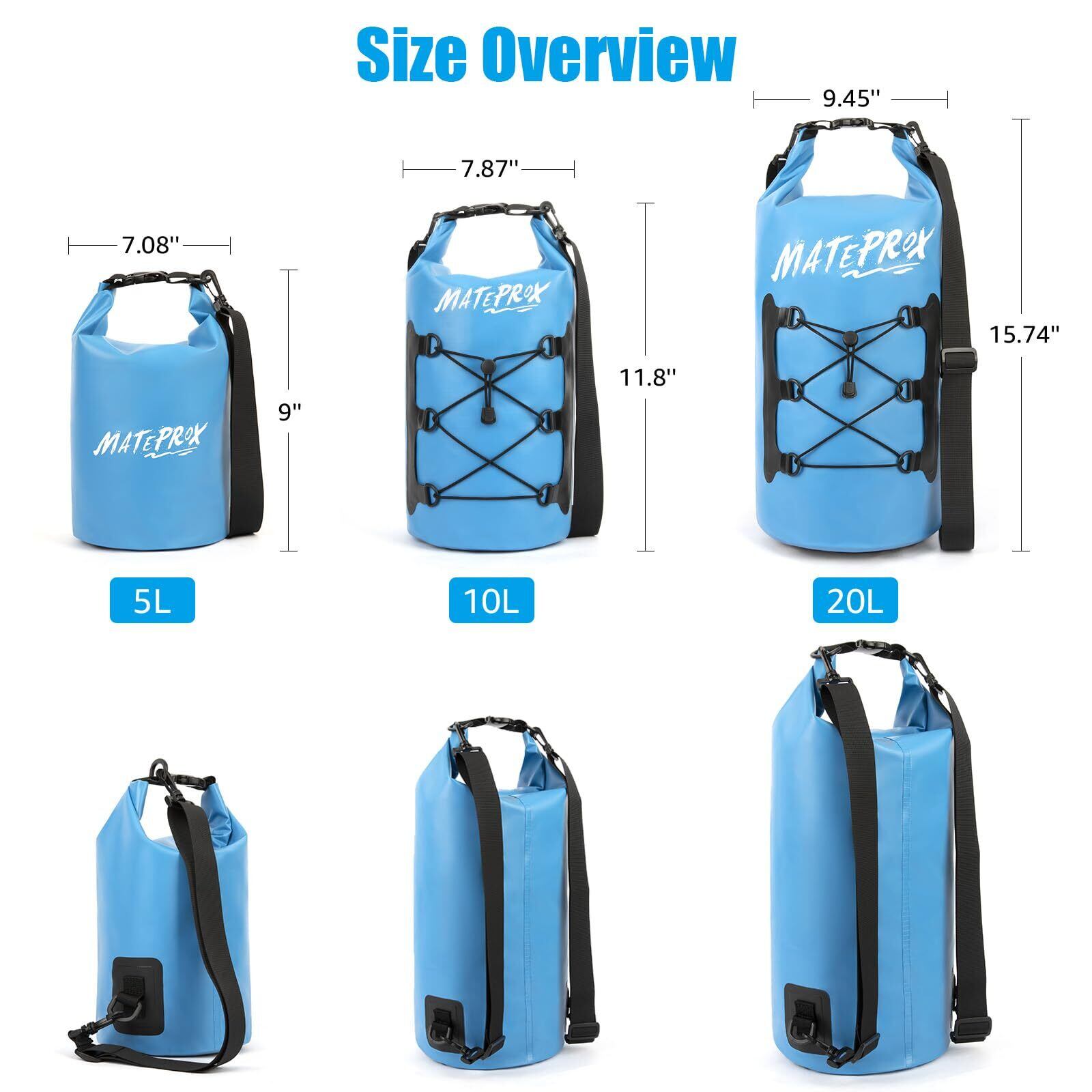 MATEPROX ドライバッグ 防水バッグ 10L/20L ドラム型 完全防水 折りたたみ 軽量 リュック 大容量 防水ポーチ付き 海水浴/釣り/ビーチ/水泳/登山/アウトドア(ブルー 20L) | Bloomia