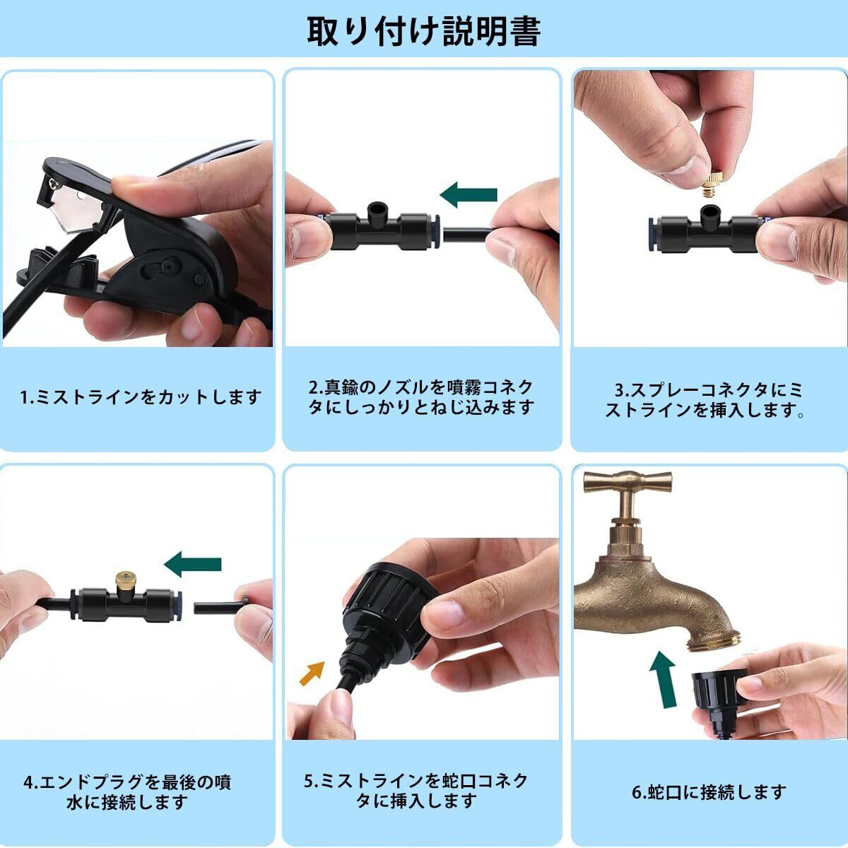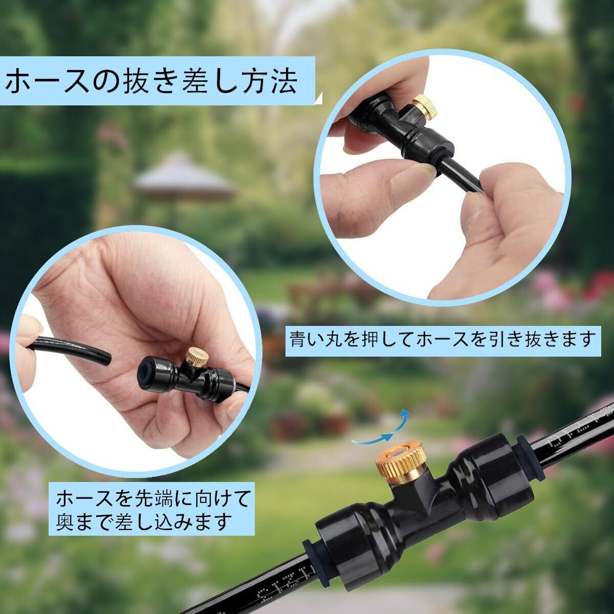 節水機能: 効率的な水の噴霧により、必要な量だけを使用できる節水設計! 多機能スプリンクラー: 噴霧、散水、冷却など様々な用途に対応する屋外用ノズルです!