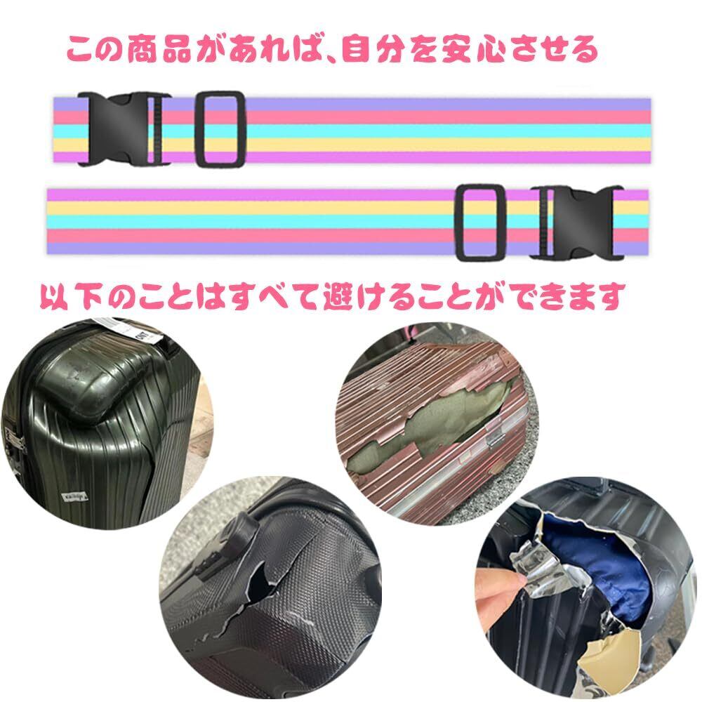 YAARUJEE スーツケースベルト 荷締めベルト 荷締バンド 多用途 固定 長さ1.8m 幅5cm 2本セット 虹色 旅行便利グッズ 調整可能 軽量 荷物用弾力固定 ずり落ち防止