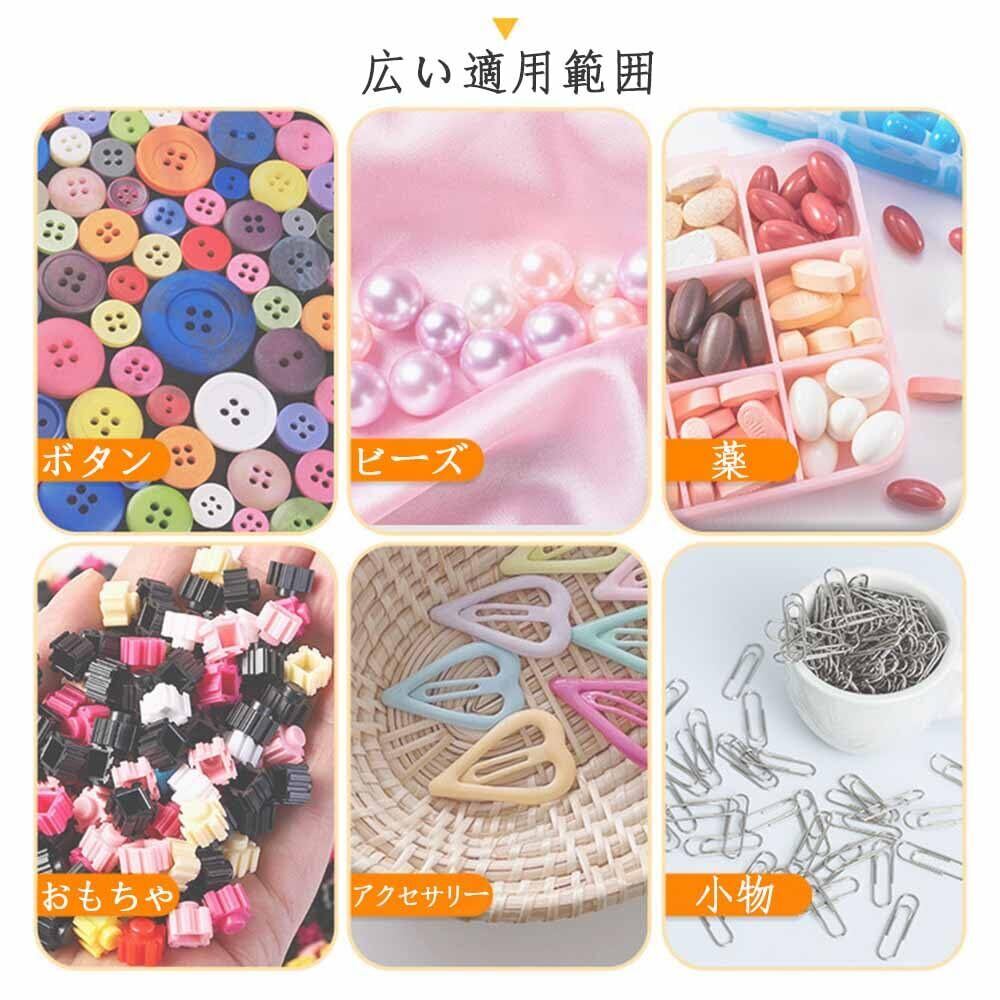 適用シーン: ダイヤモンドアートのダイヤモンド、さまざまなビーズ、ネックレス、イヤリングなどのアクセサリー、小さな部品やツールなど、様々な物を保存するのに適しています。物が紛失したり探しにくいことを防げます。非常に多種類の物を収納でき、物の種類だけでなく、色別などに分けて収納することも可能です、とても便利です。