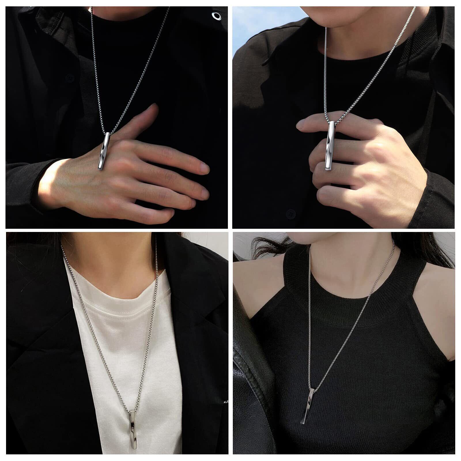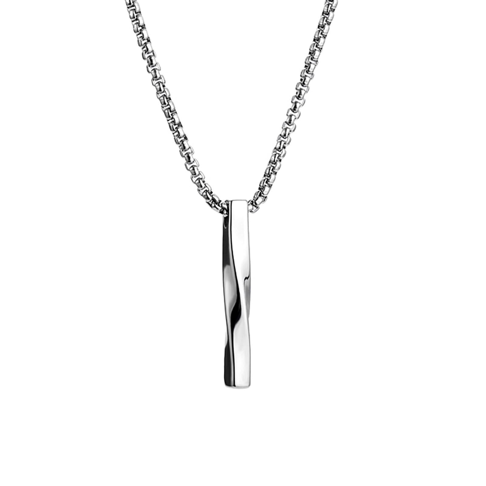 ZHEJIA ネックレス メンズ 人気 ペンダント ステンレス ネックレス シンプル ツイスト スティック ペンダント シルバー シンプル