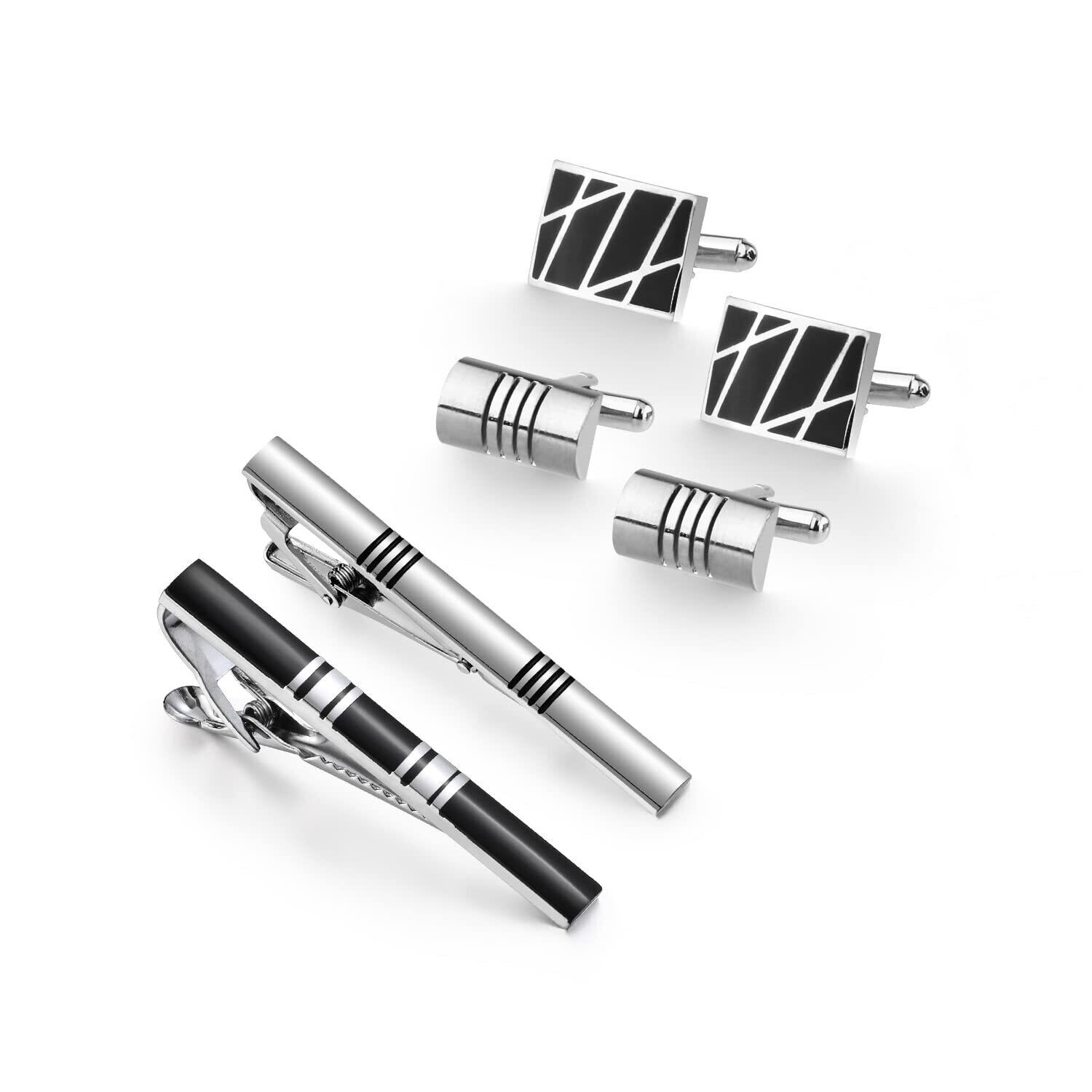 [wynameleri]上品なネクタイピン 4本セット カフスボタンセット メンズ 人気 シンプルでいておしゃれ感 日常仕事 結婚式等 高級ケース付き